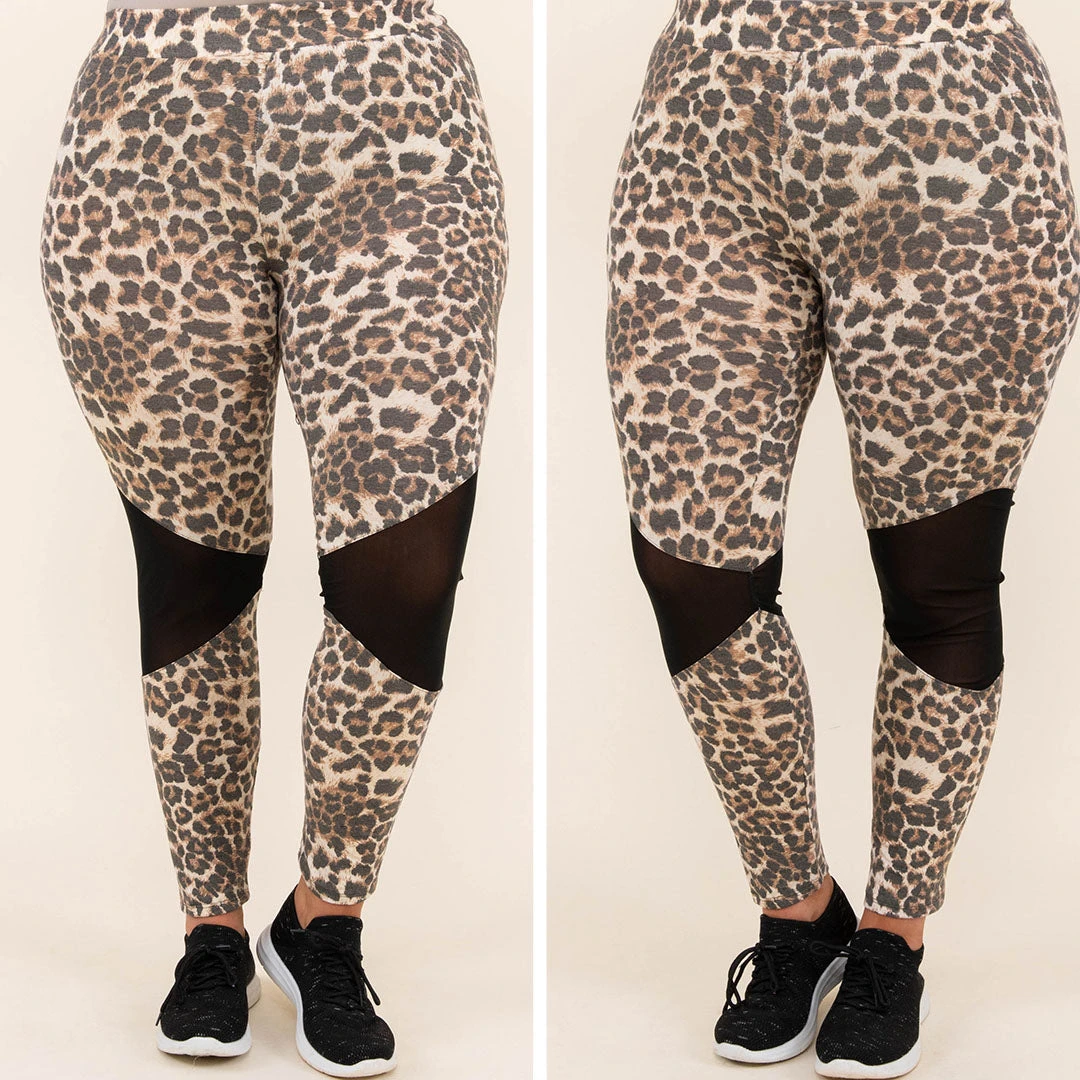 These trendy taupe leggings have a chic leopard print with a solid black mesh paneling that you can wear with everything! They’re comfortable and figure-flattering. Style these leggings with a tee and slides for an easy everyday outfit!Â