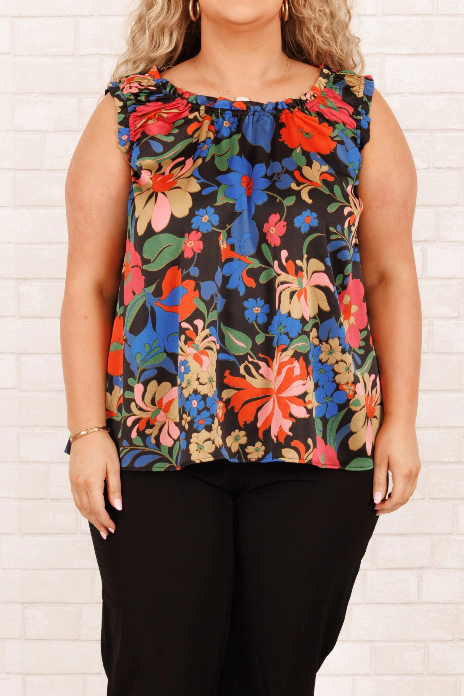 This figure-flattering top is a must-have for any wardrobe! Crafted with a tank cut and black color, it offers you a classic and stylish look, ideal for any occasion! Enhance your style with this floral timeless and sophisticated piece!