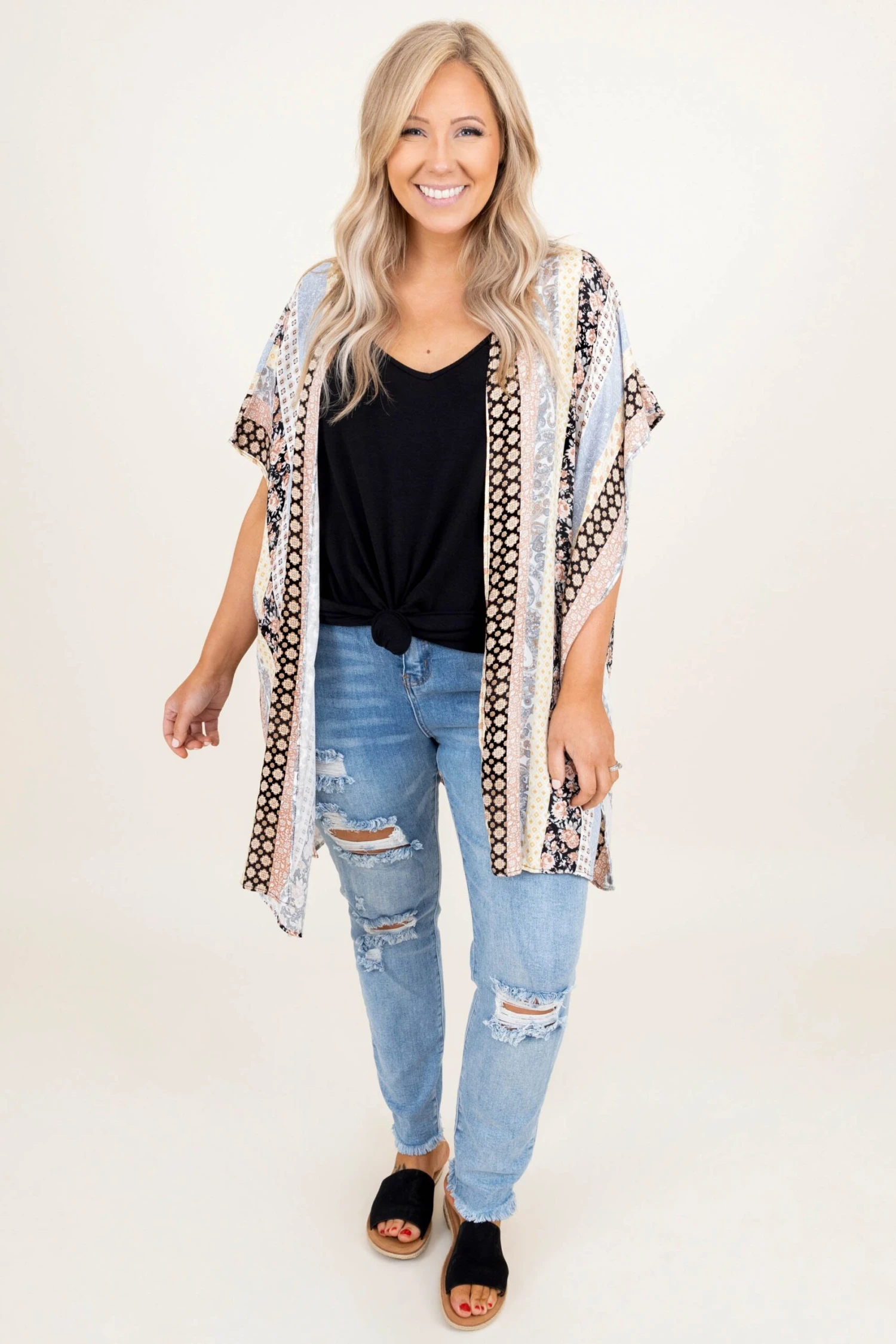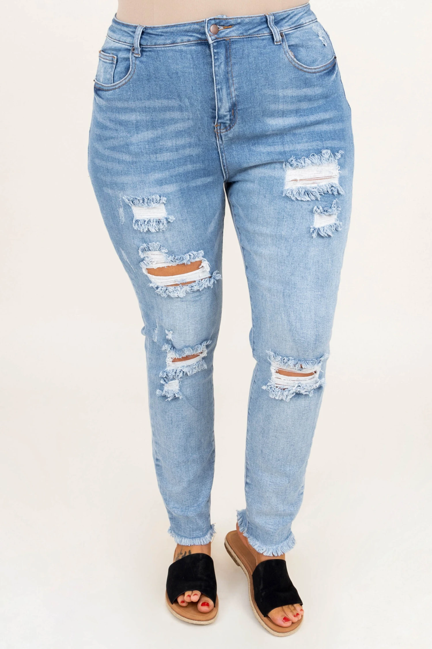 Get these jeans now! The blue wash color is so trendy for the season and the boyfriend style will look good on everyone! Style these with a basic tee and your fave sandals for the perfect look!