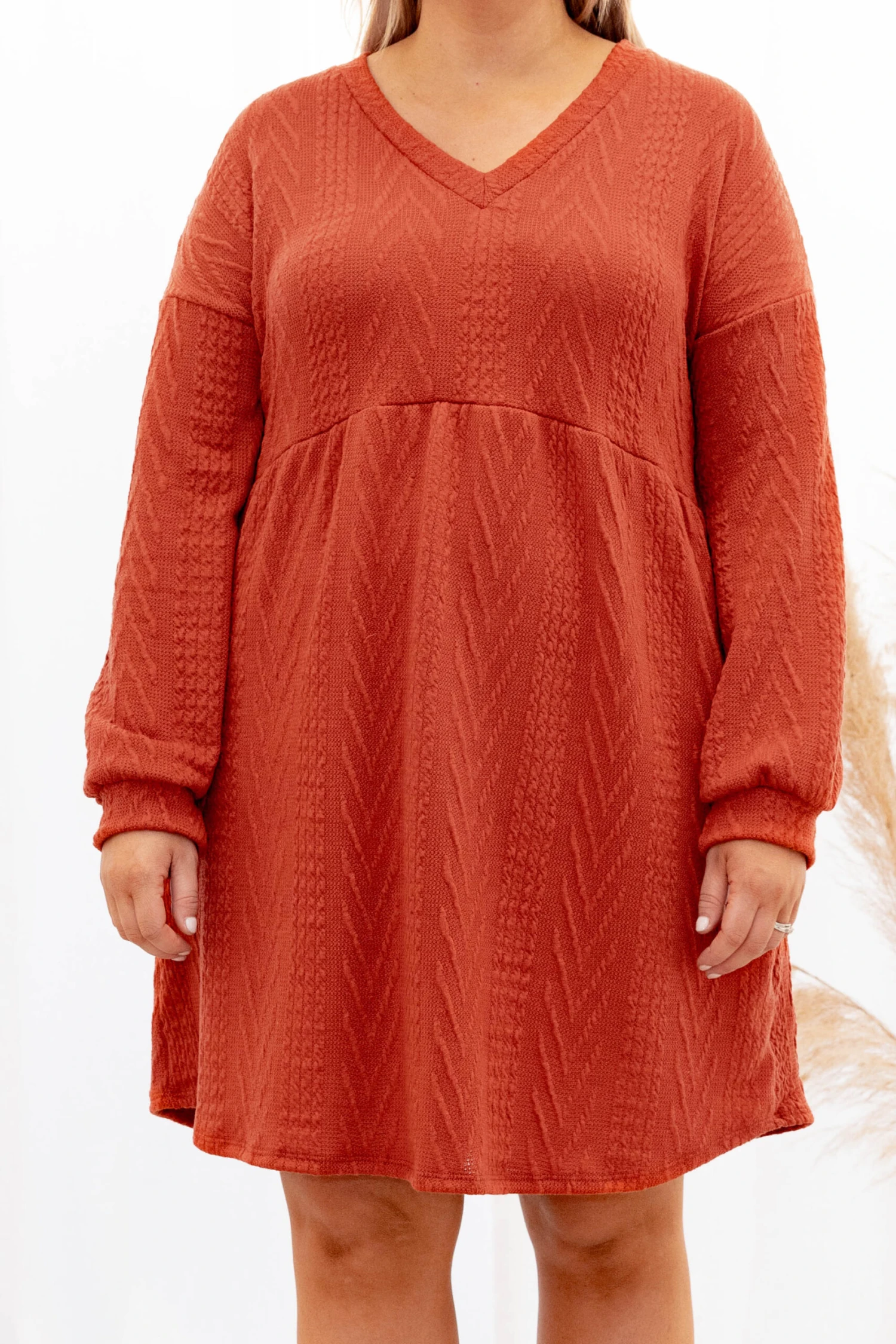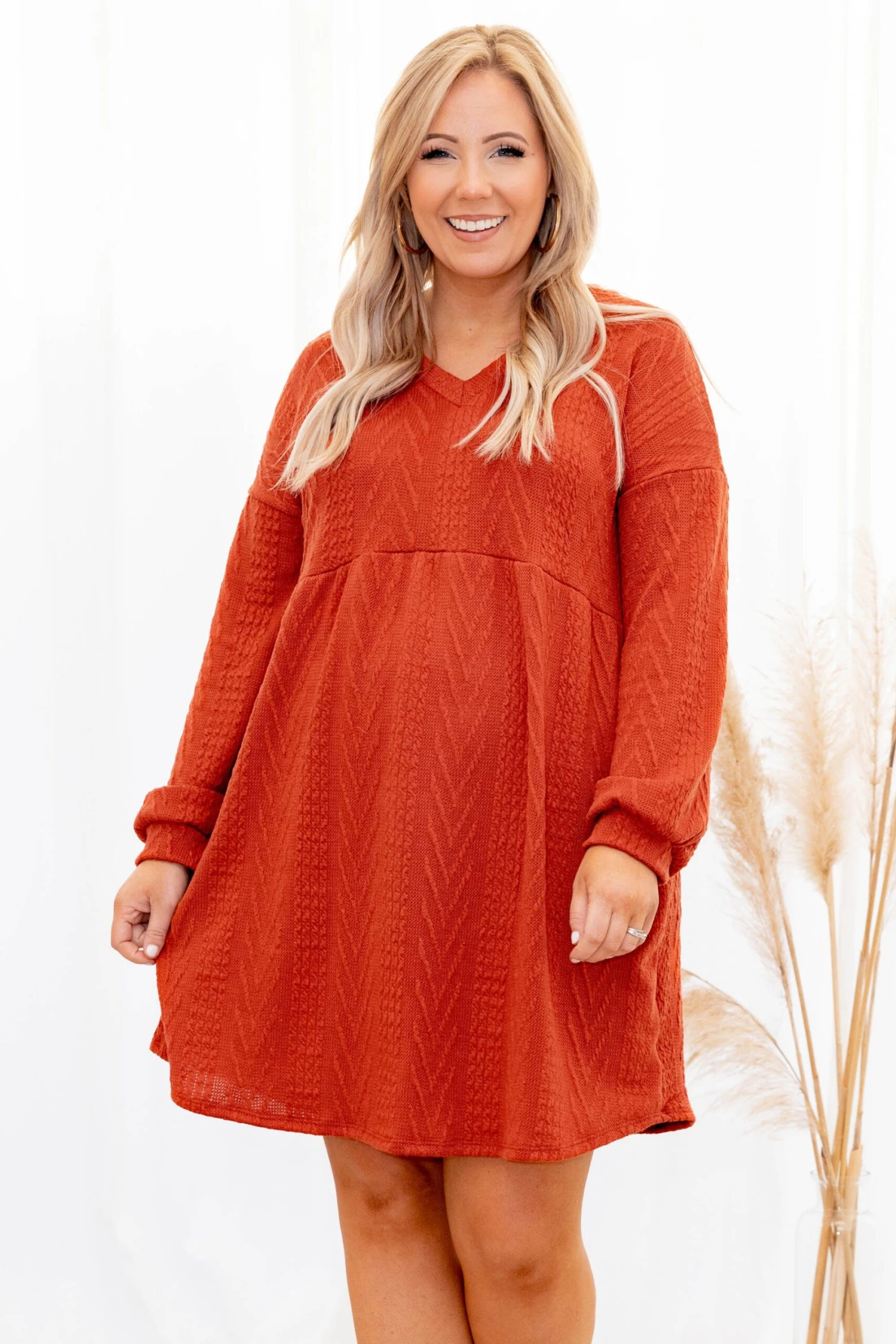 Girl, we know you will love this dress! It has a flattering babydoll fit with a fun cable knit texture. Throw this on with a cardigan and booties for a cool weather style!