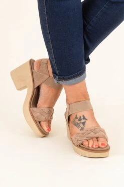 Go for a stroll in these heels! These cuties have a comfy block heel with a trendy double strap look so you can walk in style! The taupe color can match anything and the braided strap is so fun! Style these with white skinnies and a stylish top for a snazzy outfit!