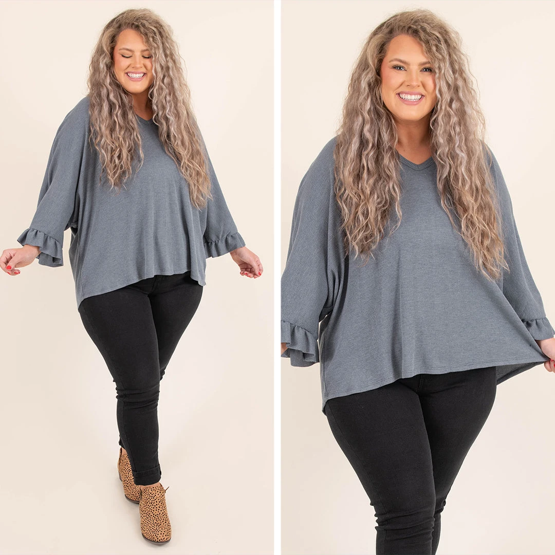 You’ll definitely be the go to girl for fashion advice in this top! This top has a lovely flowy fit and soft ribbed texture perfect for the season! Simply style this top with some dark denim and booties for a casual, chic look!