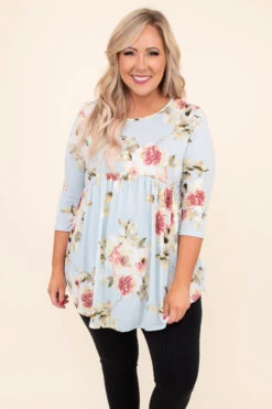 This tunic is pure gold! It has the prettiest floral pattern with a soft mint color that’s perfect for the season! It’s comfortable for all day wear, has a figure-flattering baby doll fit, and features a tunic-length curved hem for the ultimate style! Simply, pair this tunic with skinnies and wedges for an effortlessly beautiful look!Â
