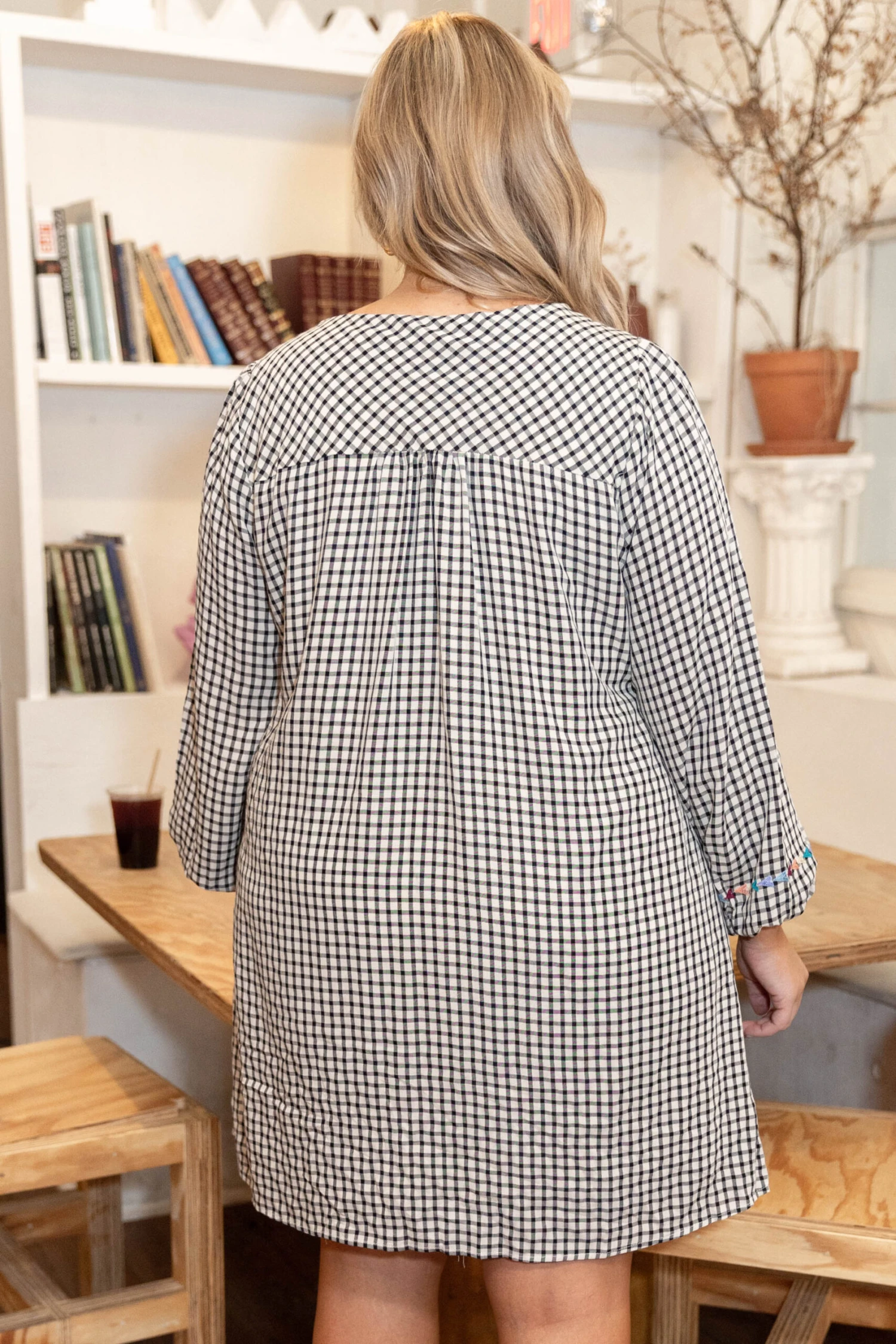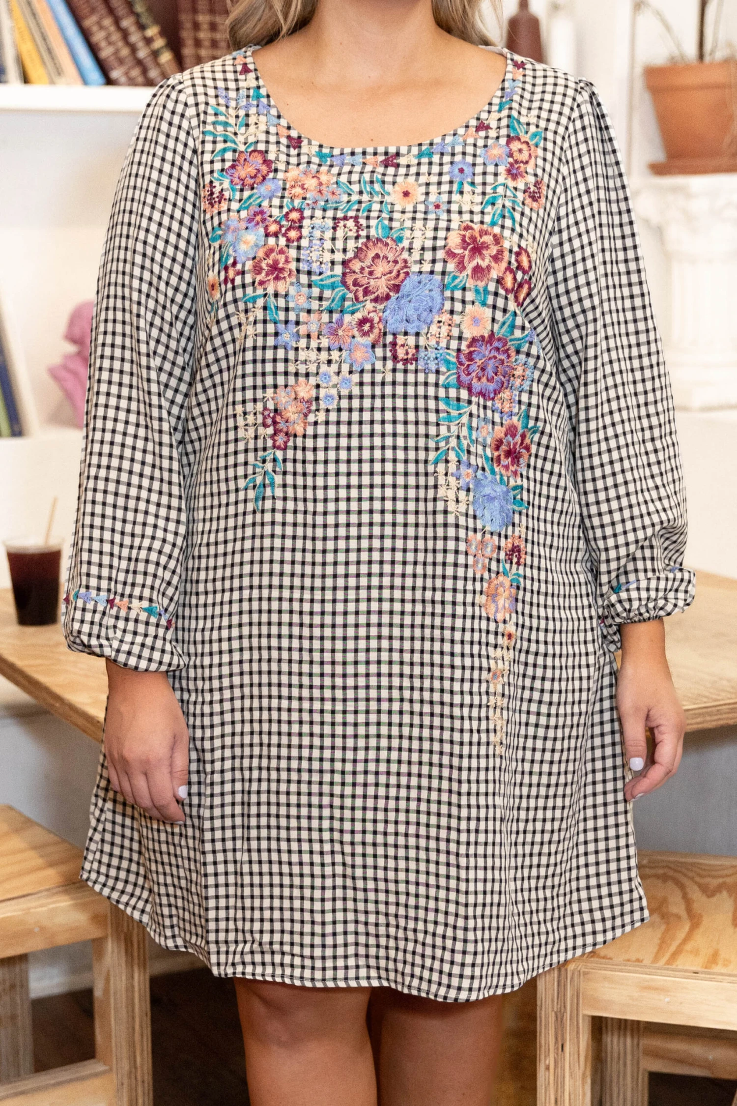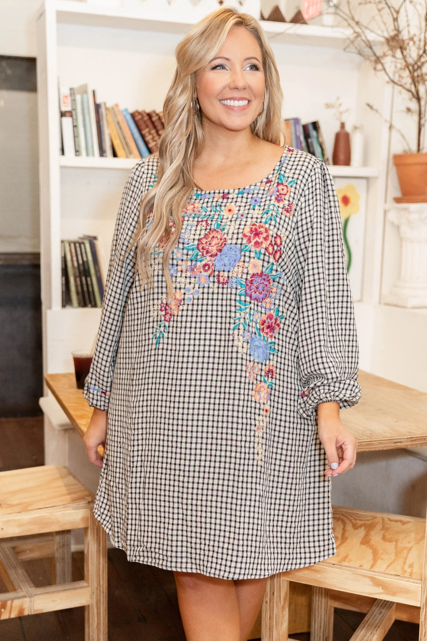 You will love this dress! It has a dainty plaid pattern that features the sweetest floral embroidery design! It’s comfortable for all-day wear and has a figure-flattering fit! Pair this dress with your favorite booties and bold earrings for an effortlessly chic look!Â