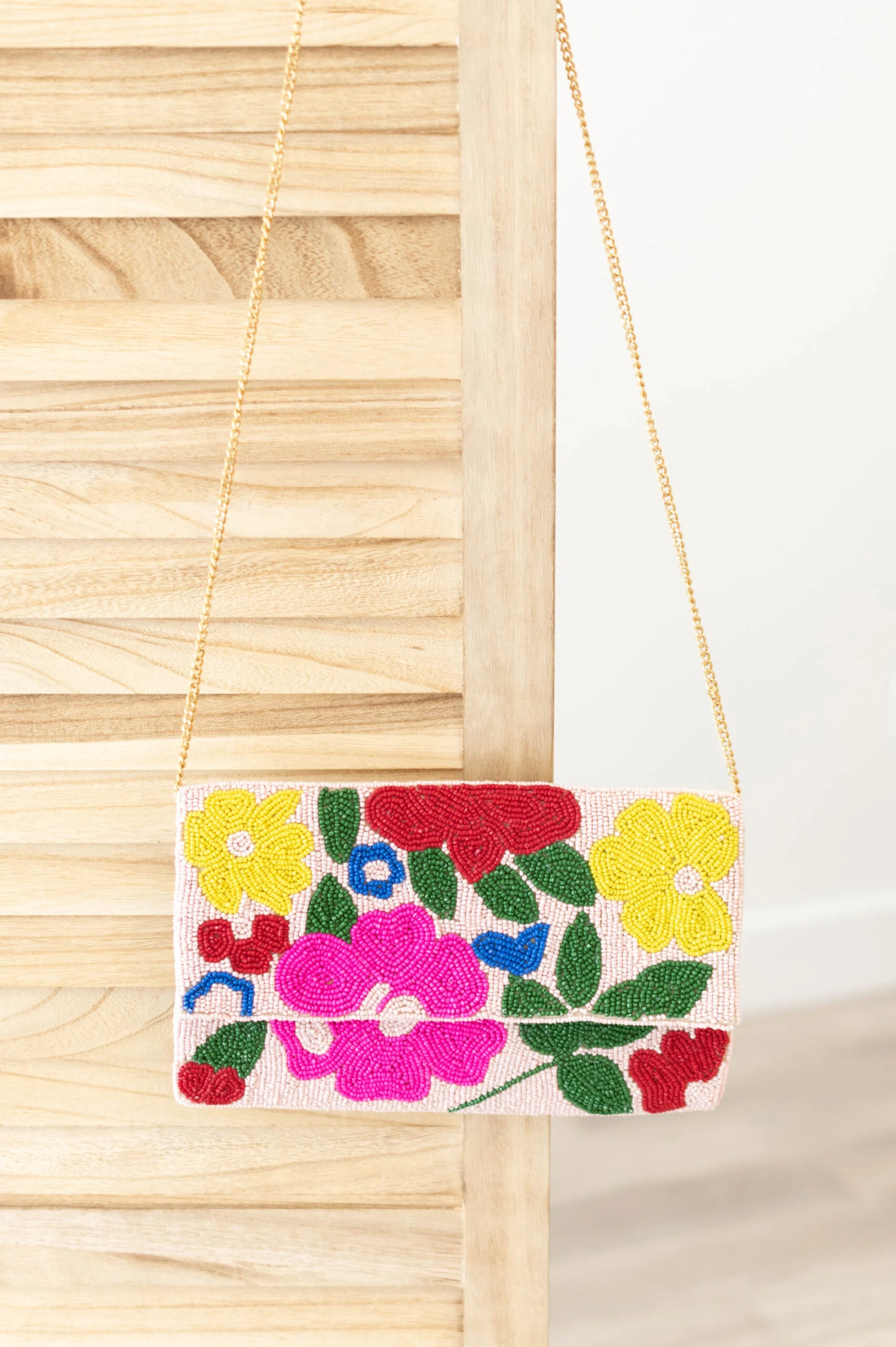 Take this beauty with you on your next flower picking adventure! It has a gorgeous multi color design that is just what you need for the season! The beaded design and floral pattern is a must-have! Style this purse with a sassy dress and heels or cute top and skinnies for a classy chic look!