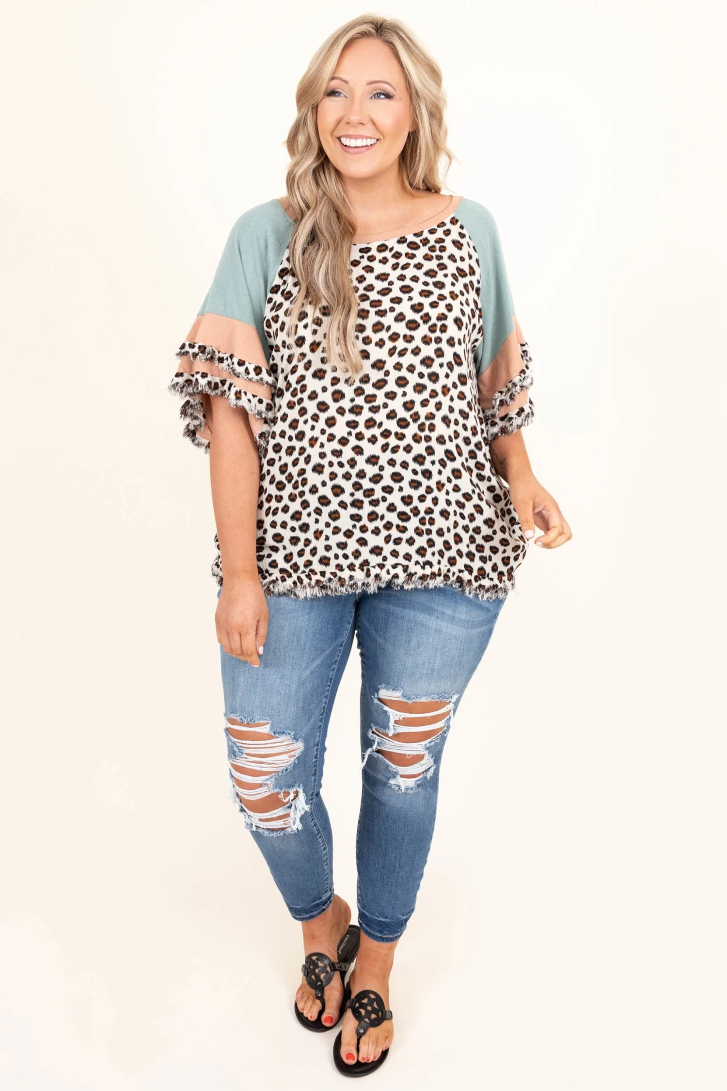 Embrace the hustle in these jeans! These have a washed medium color with super trendy distressing and stretch to keep you comfy! Style them with a fun top and some sandals or heels for a super classic look!