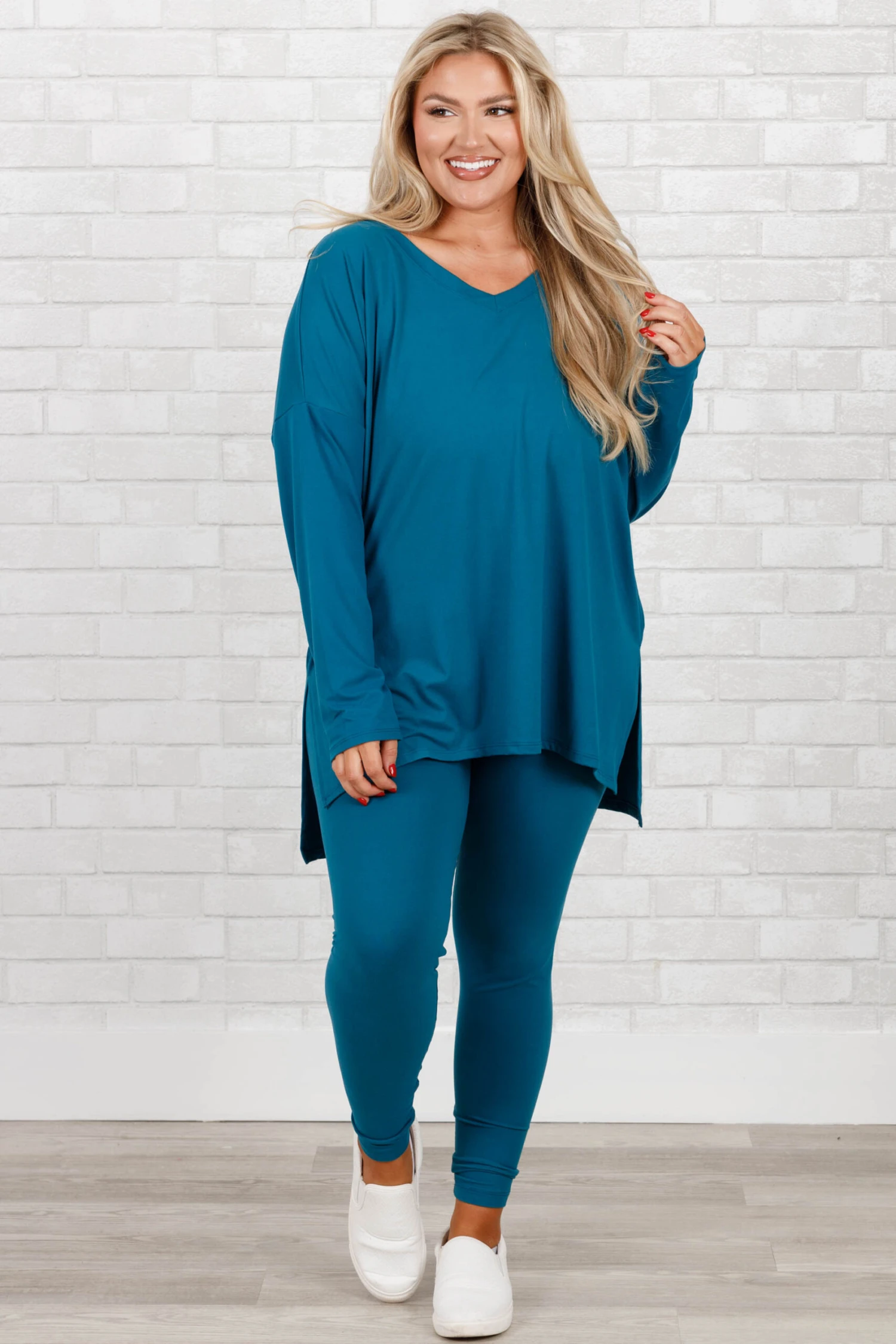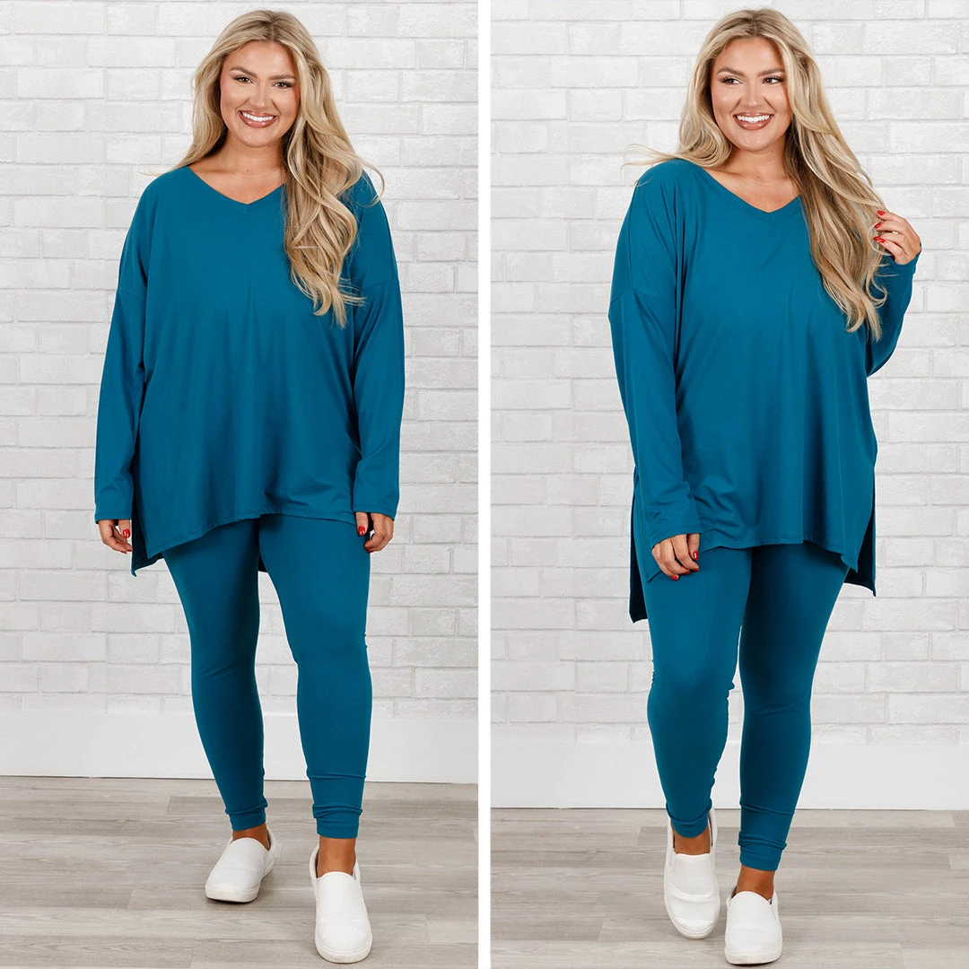 We made this set with you in mind! Its stretchy fabric and classic teal color make it comfortable and versatile for lounging around or a casual day out! With its comfy fit, you will feel relaxed and confident no matter where you go!