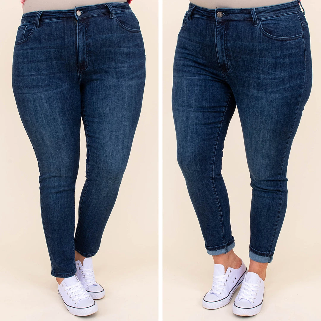 These are the jeans you can wear today and every day after! These jeans have a classic dark wash fabric you can dress up or down for every occasion! They’re comfortable for all day wear, have a figure-flattering fit, and feature a solid design for a sleek look! Pair these jeans with a flowy top and sneakers for an effortlessly chic look!Â