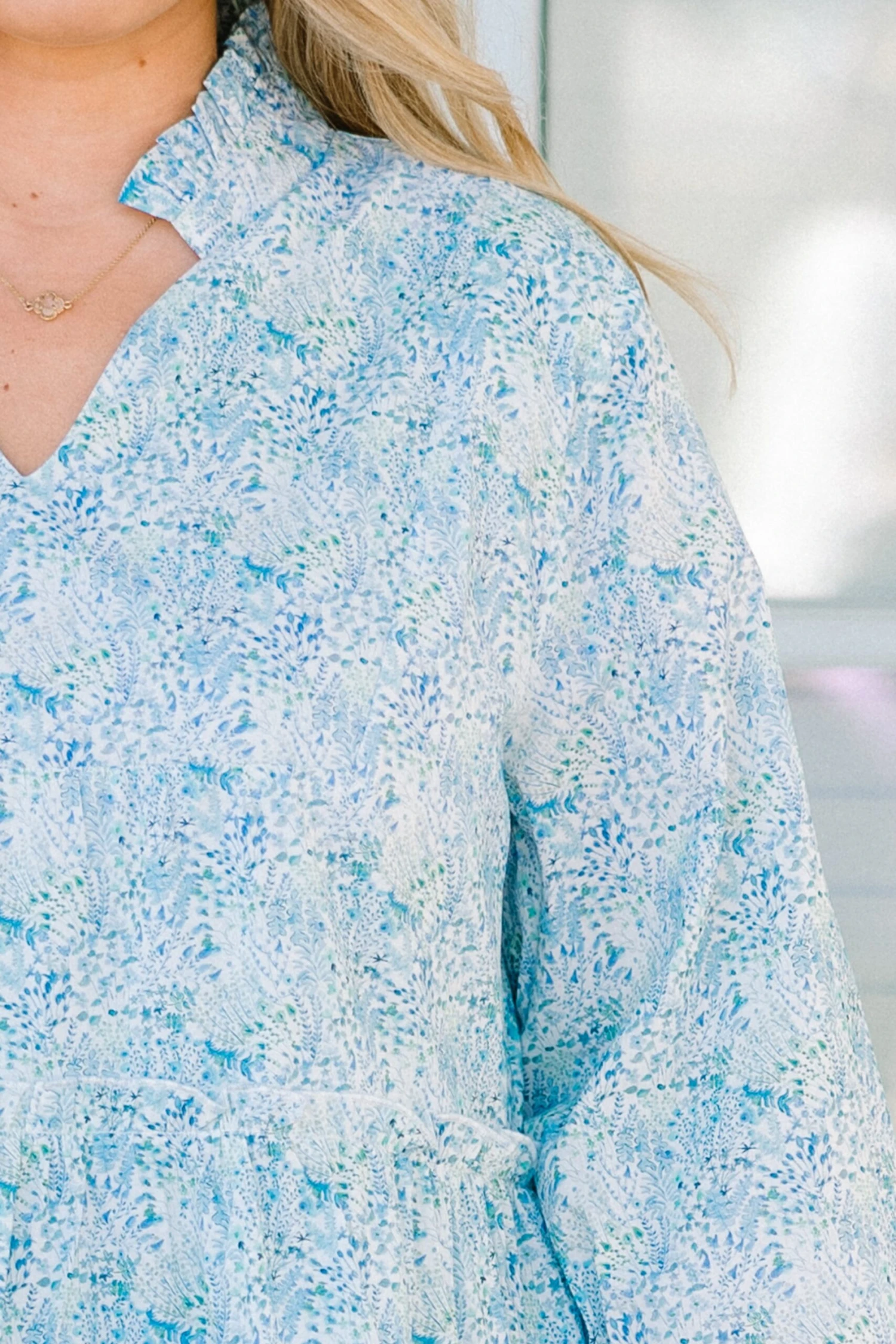 Get ready to look heavenly in this dress! This darling cerulean babydoll dress is adorned with a charming ditsy floral print, perfect for any occasion! Float through your day in style and comfort! An angelic addition to your wardrobe!