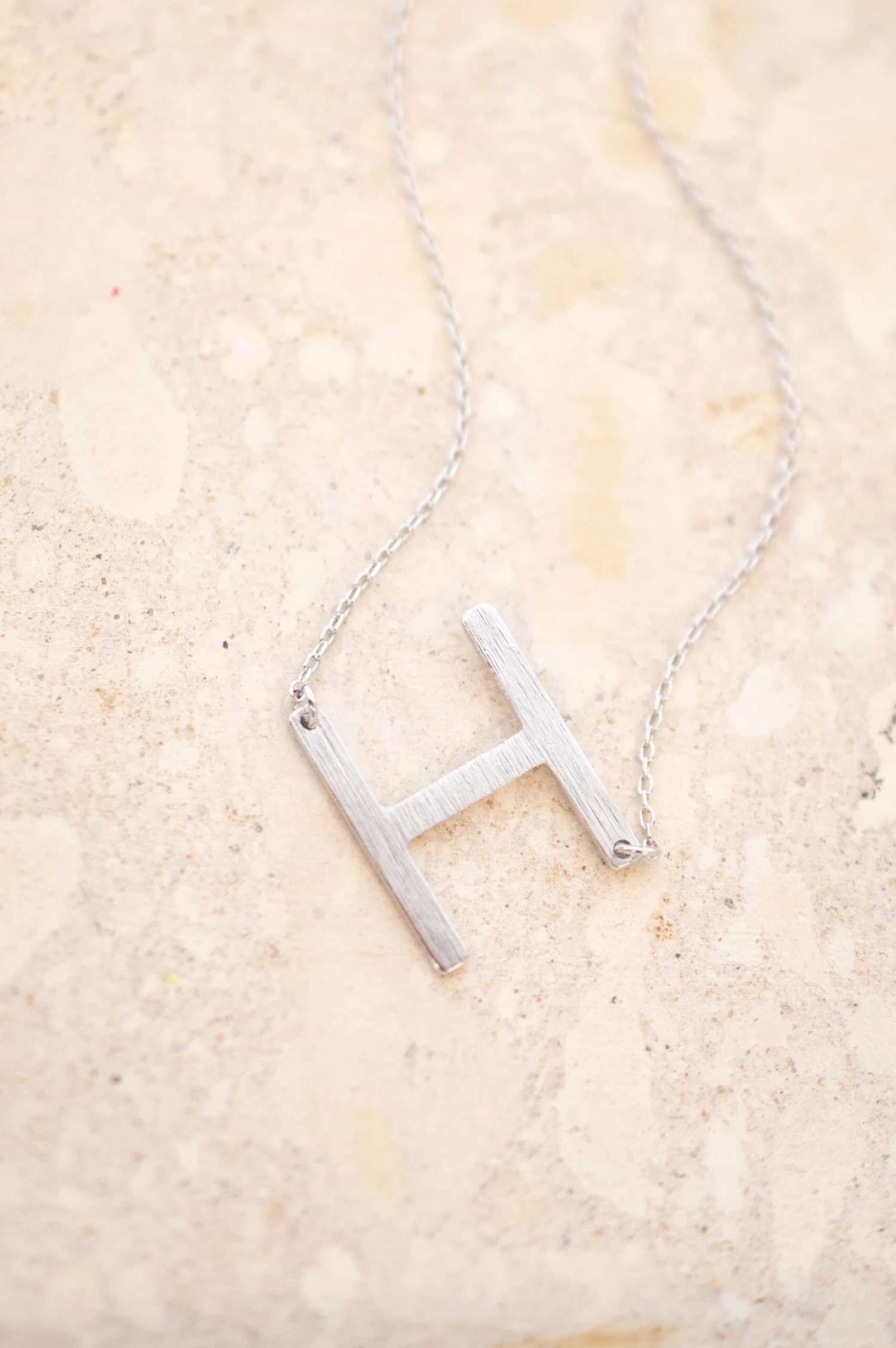 Nice to meet you! Add a personal touch to your outfits with our “H” initial pendant. Simple and classic, with a chic silver color this custom necklace will become a new daily staple.Â