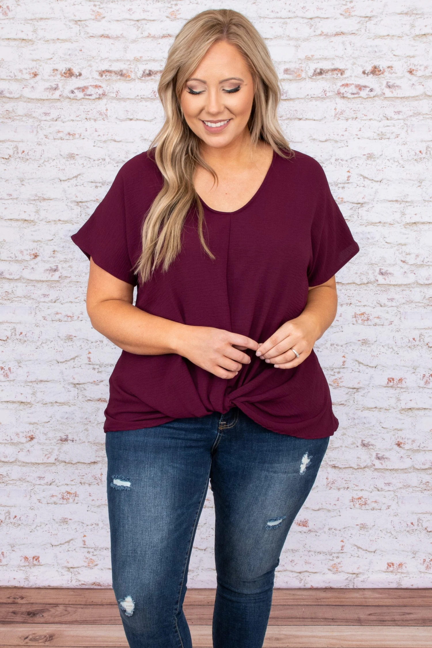 We could not heart this blouse more! This blouse has a solid sweet color you can dress up or down and style for every occasion! It’s comfortable for all-day wear, has a figure-flattering fit, and can be paired with your favorite shoes and accessories! Simply, wear this blouse with skinnies and wedges for an effortlessly chic look!Â