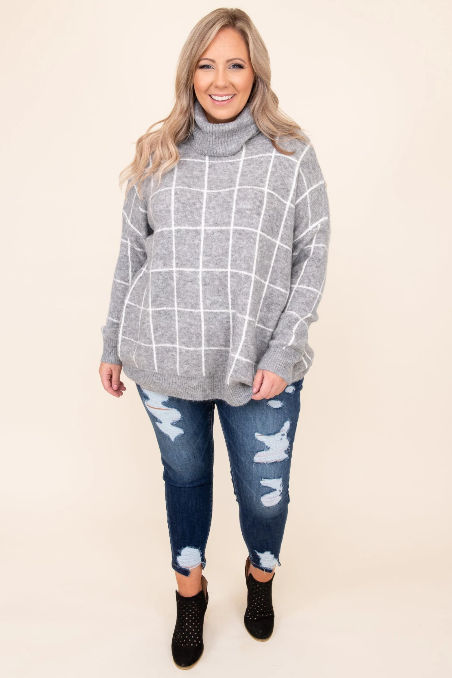 We love this super chic sweater and know you will too! This sweater has a simple stripe pattern with neutral colors you can dress up or down and style for every occasion! It’s comfortable for all-day wear, has a relaxed fit to flatter your figure, and can be layered with your favorite outerwear! Simply style this sweater with skinnies and boots for an effortlessly chic look!Â