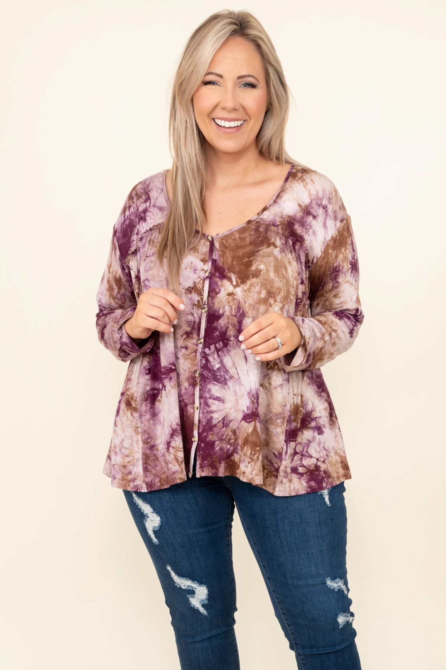 We hope you love this top as much as we do! This top has a trendy tie dye pattern with colors that are perfect for the season! It’s comfortable for all day wear, has a flowy fit, and features the cutest ruched details! Style this top with skinnies and booties for an easy everyday outfit!Â
