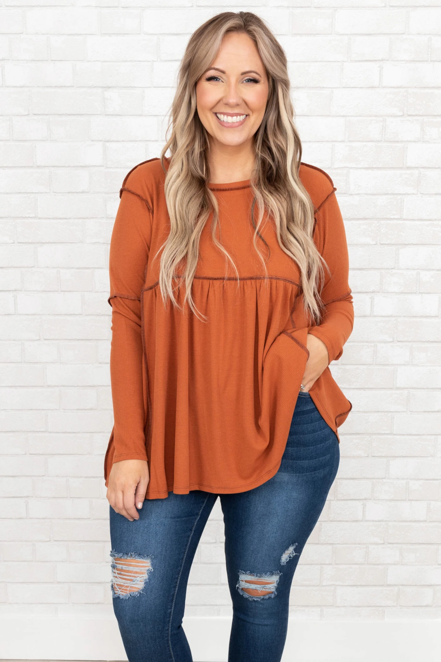 We see a love story with this top in your future! It has a sweet babydoll fit, trendy exposed seams and a cool waffle texture. Style this with distressed skinnies and sneakers for a fab outfit!