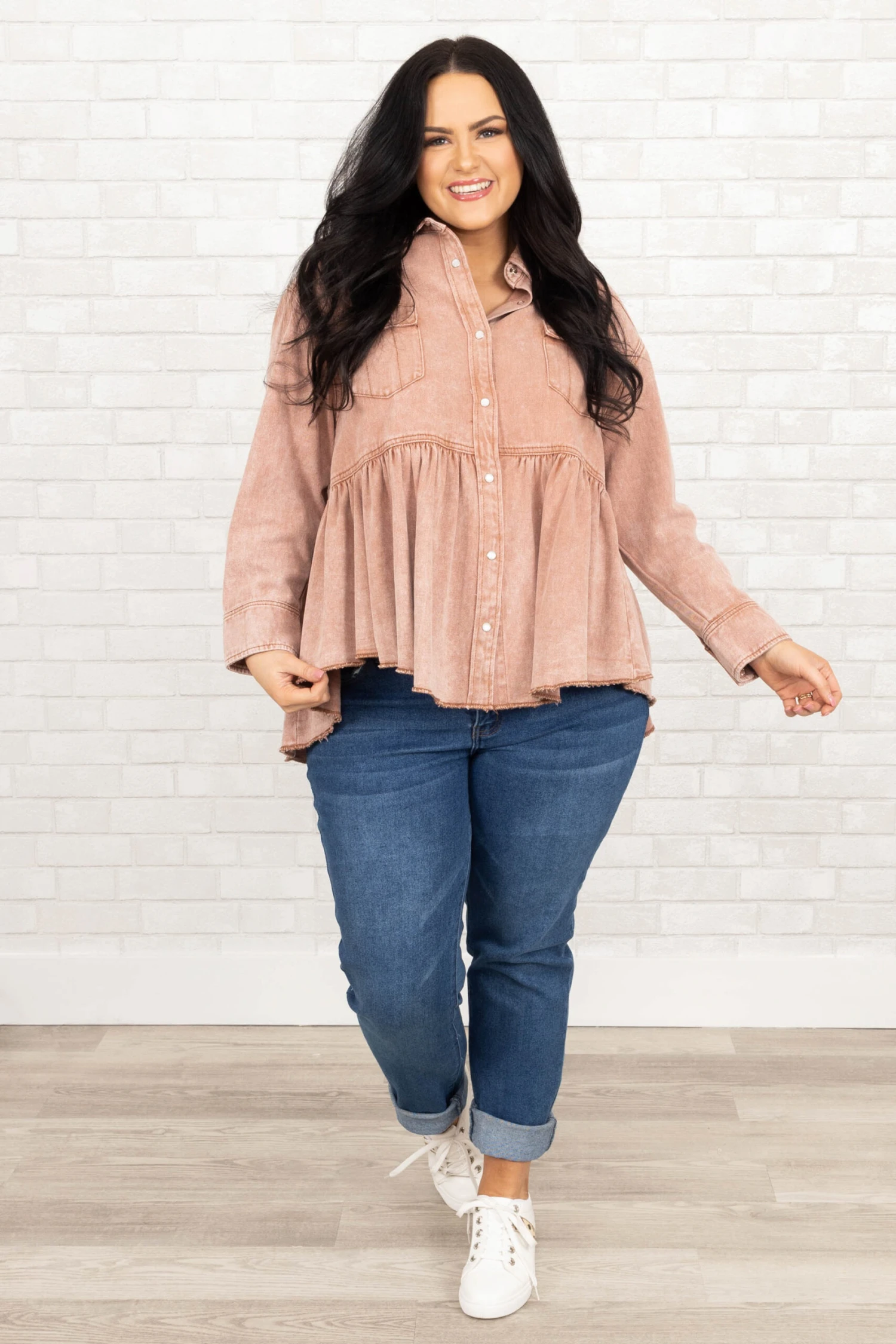 We don’t want to live any longer without this top! It features a pecan colored fabric with a cool babydoll fit! It’s comfortable for all-day wear, has a flowy fit, and features the perfect length to pair with all of your jeans and jeggings!