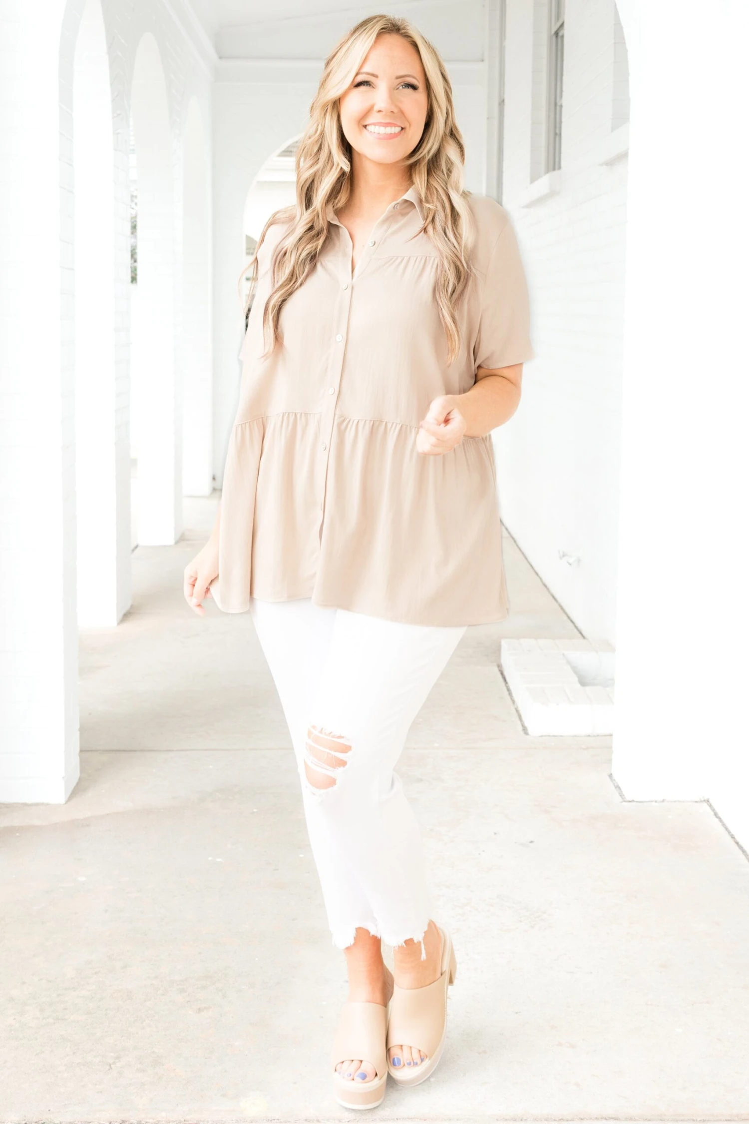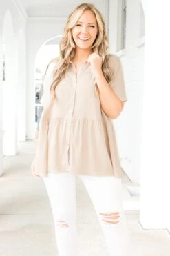 You’ll be all about the beauty of this top! It features a delicate and flowy design that’s perfect for any occasion! Its neutral hue makes it effortless to pair with your favorite jeans or skirt and your favorite accessories!