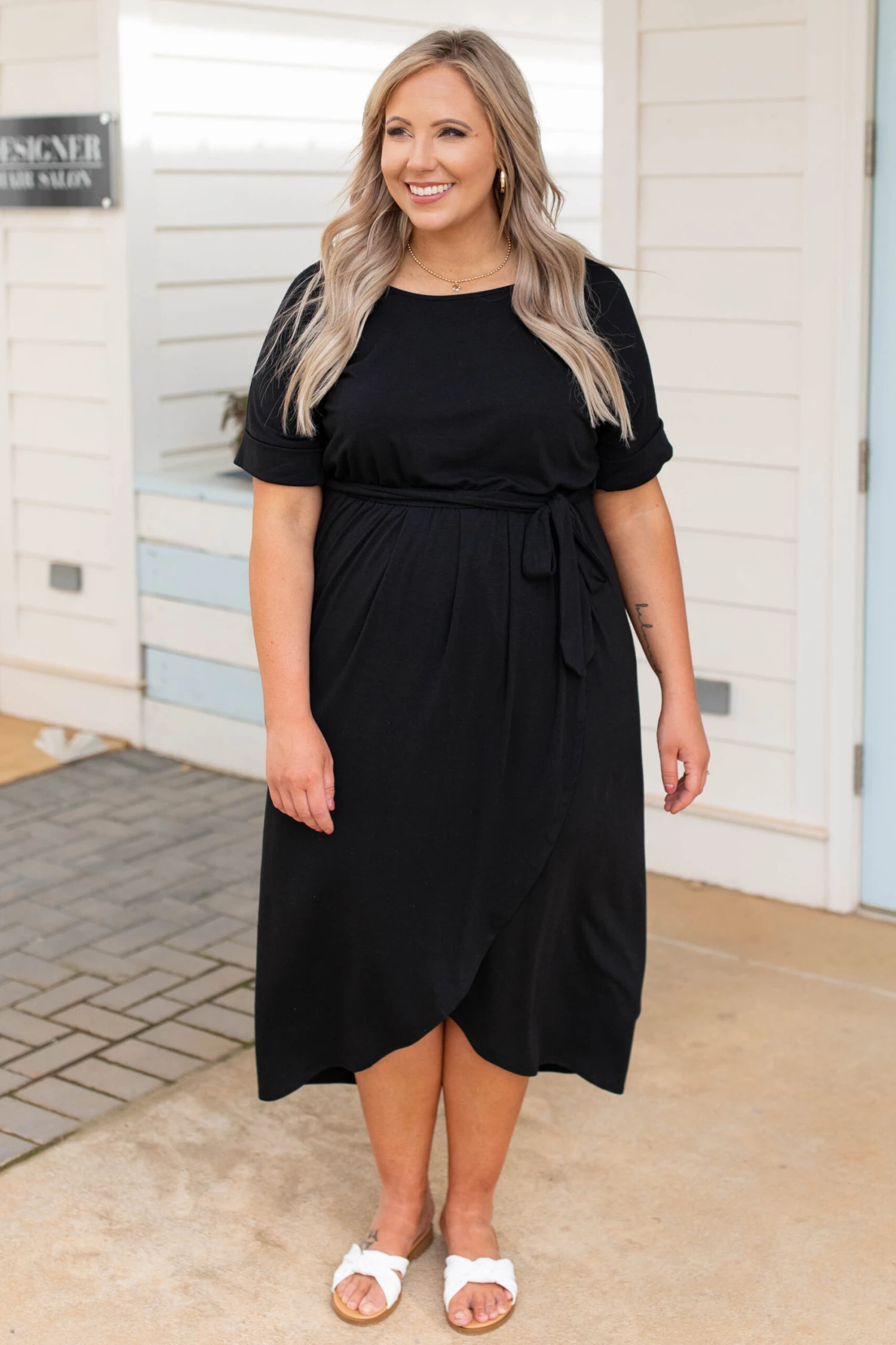 Leave them all speechless in this stunning dress! It’s a must-have for the season! It has a beautiful bold black color and a super flattering fit. It’s light and breezy, making it perfect for both day and night! Style it with a layered necklace and wedges to complete the look!