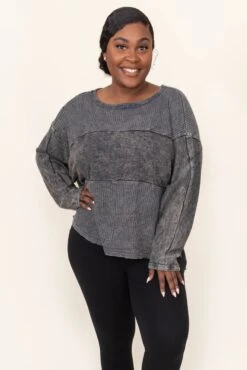 We simply LOVE this sweater! The neutral charcoal color and trendy acid wash design is a season favorite! The cozy material and figure flattering fit is perfect for all day wear this season! Style this sweater with leggings and sneakers for a casual, comfy look!