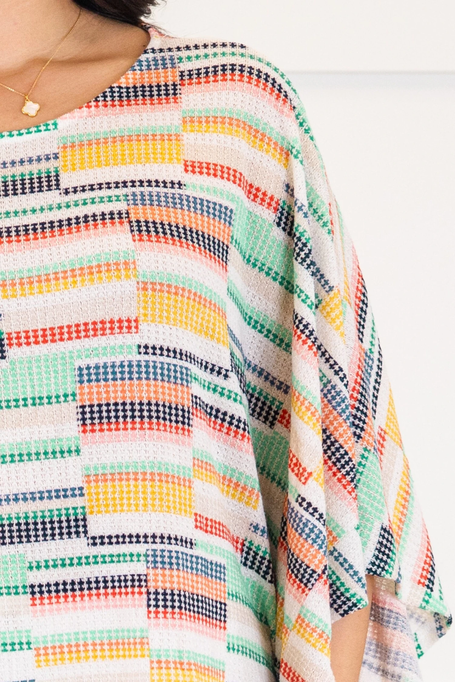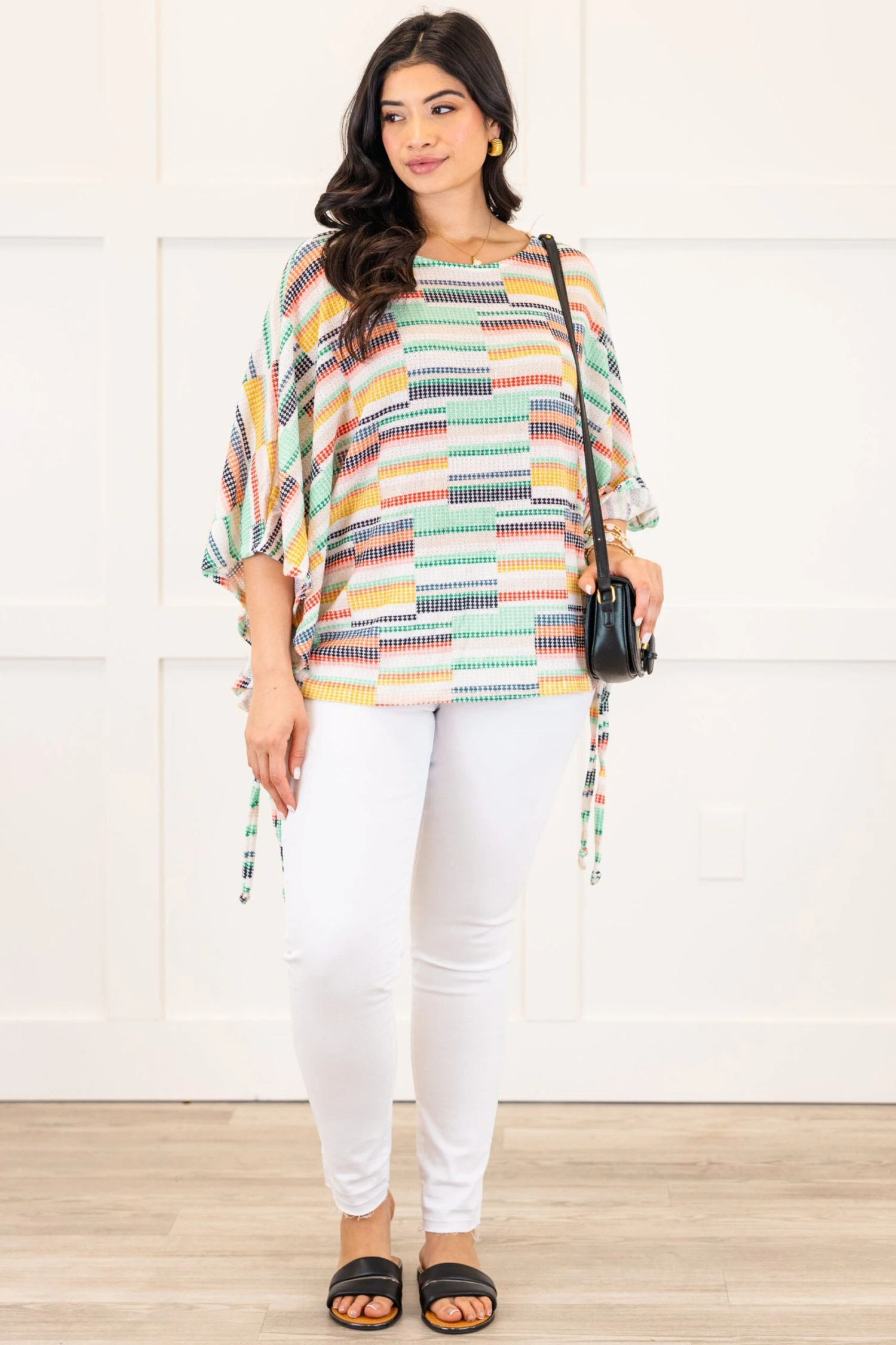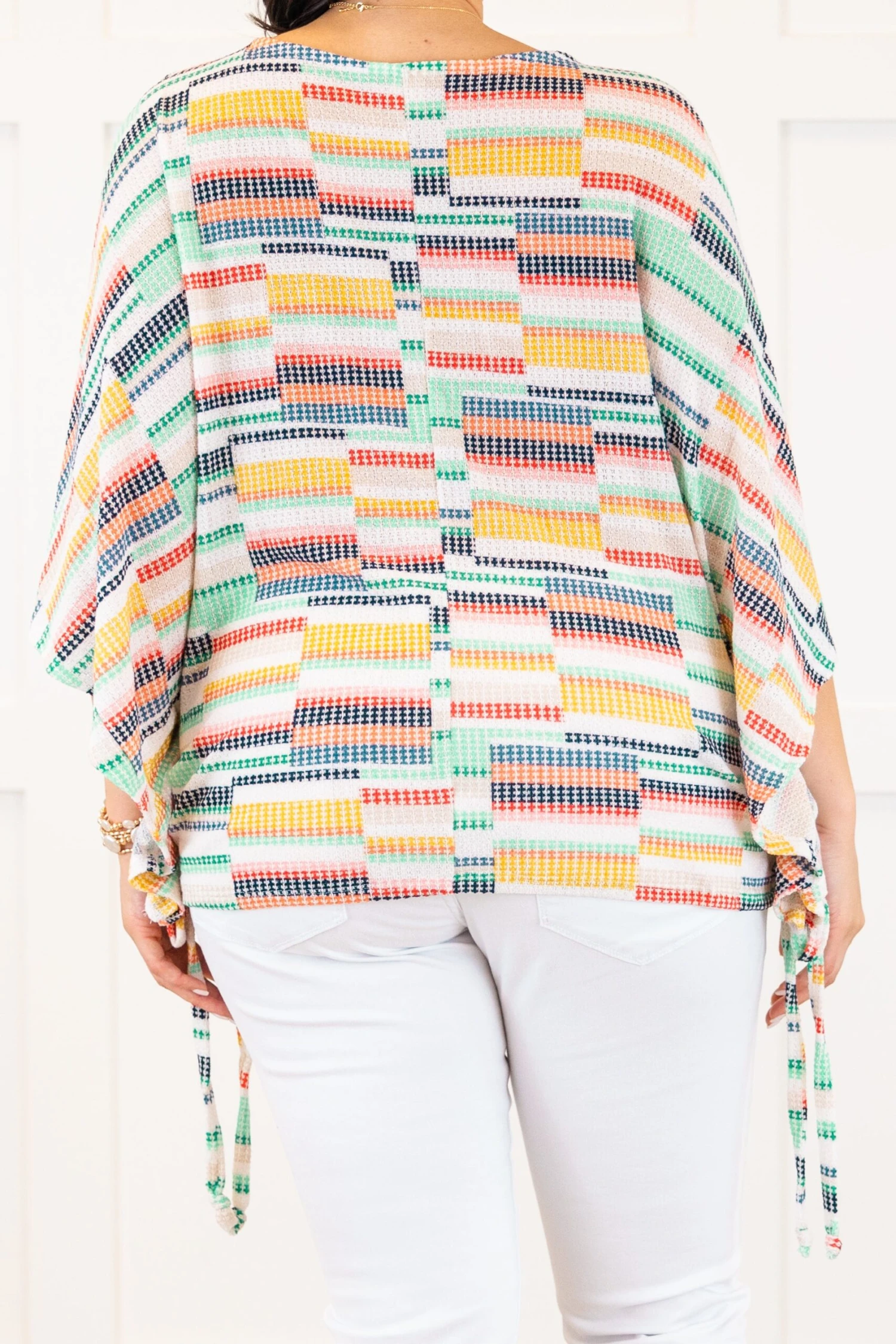 Add a splash of color to your wardrobe with this top! This multicolored knit top features a unique drawstring detail on the sides, adding a playful touch to your outfit! Stay stylish and comfortable with this must-have piece!