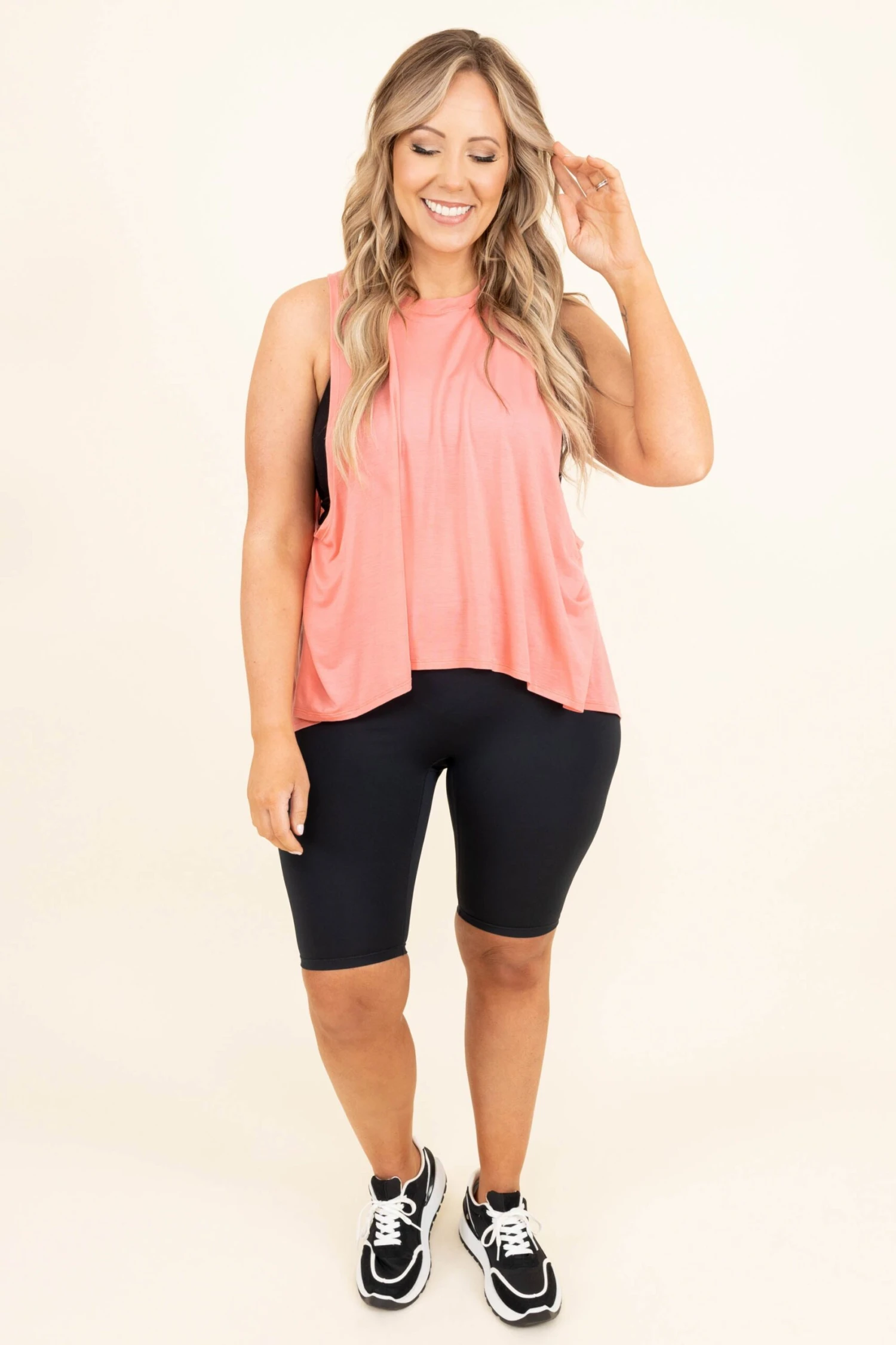 Get your groove on in this adorable tank! It has a light pink color with a sassy mermaid tail back that is perfect for your new go-to tank! Its stretchy, figure flattering fit is great for all day wear! Pair this tank with some biker shorts and sneakers for the ultimate casual look!