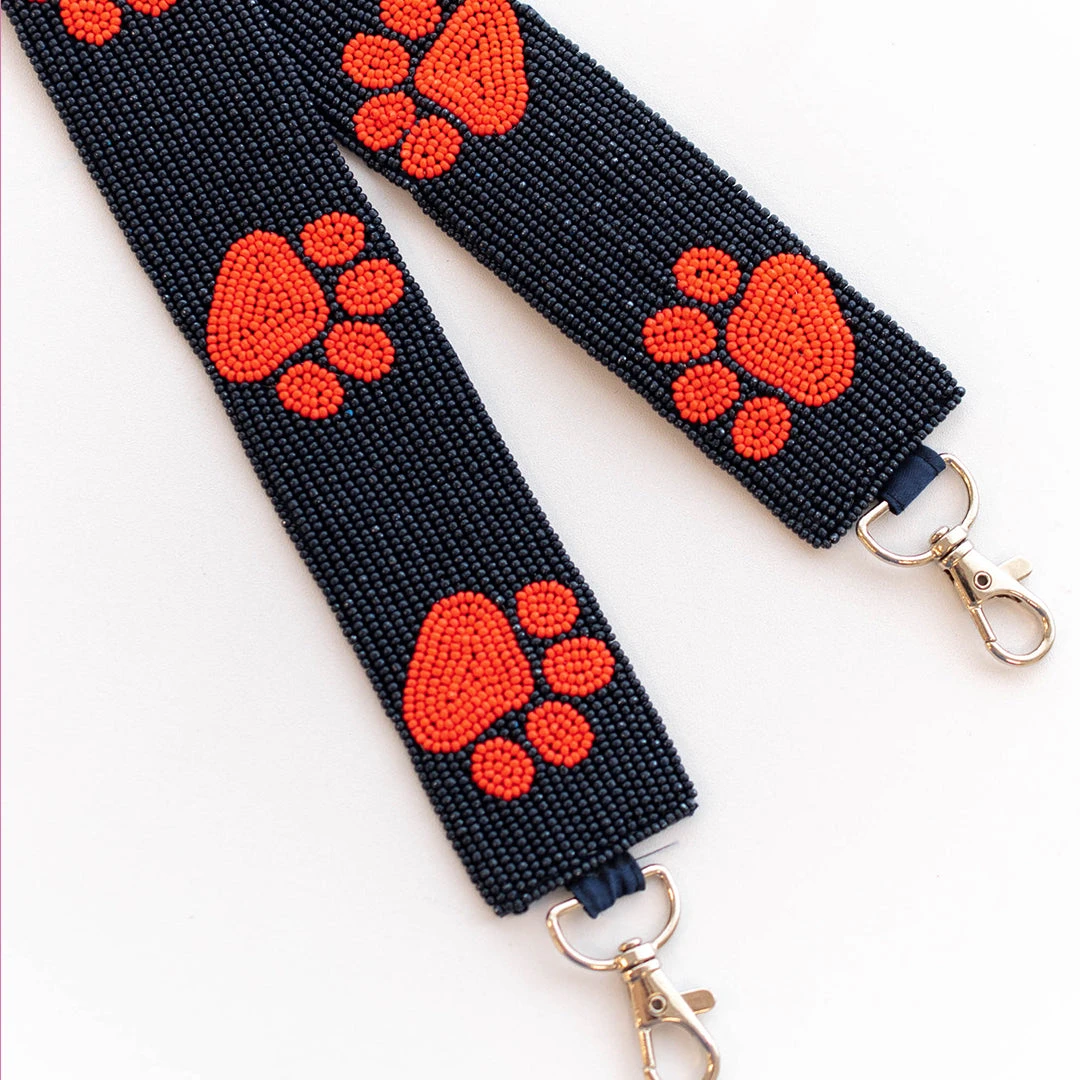 Keep Your Paws On The Ball Beaded Purse Strap, Navy Orange