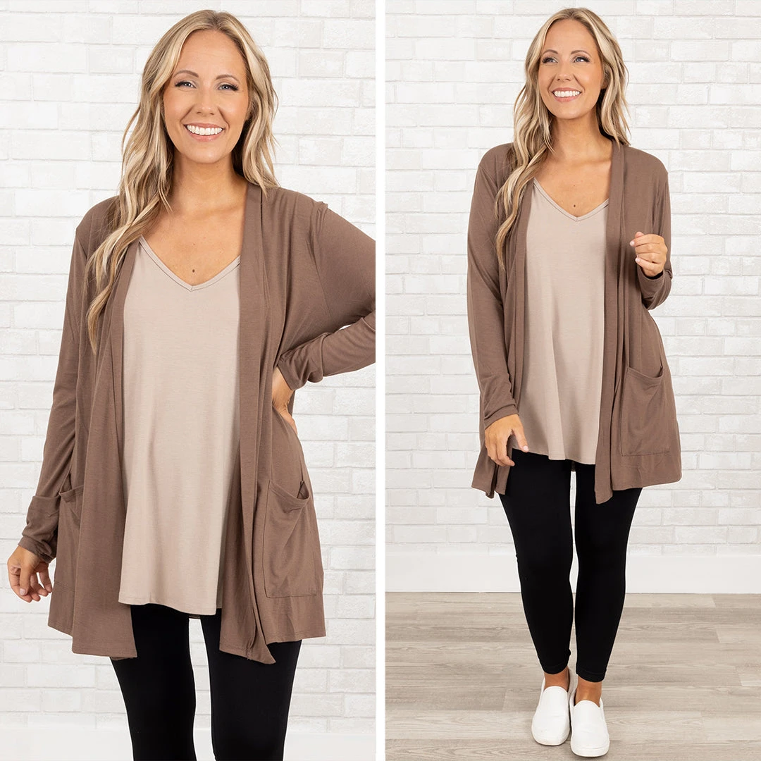 We are simply in love with this beautiful cardi! This gorgeous, mocha cardigan features figure-flattering fit, lightweight fabric, and functional pockets that you’ll adore! The perfect layering piece for the season, it’s sure to become a staple in any wardrobe!