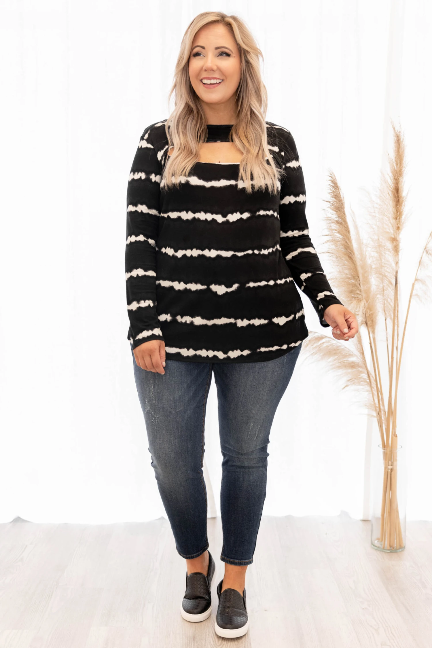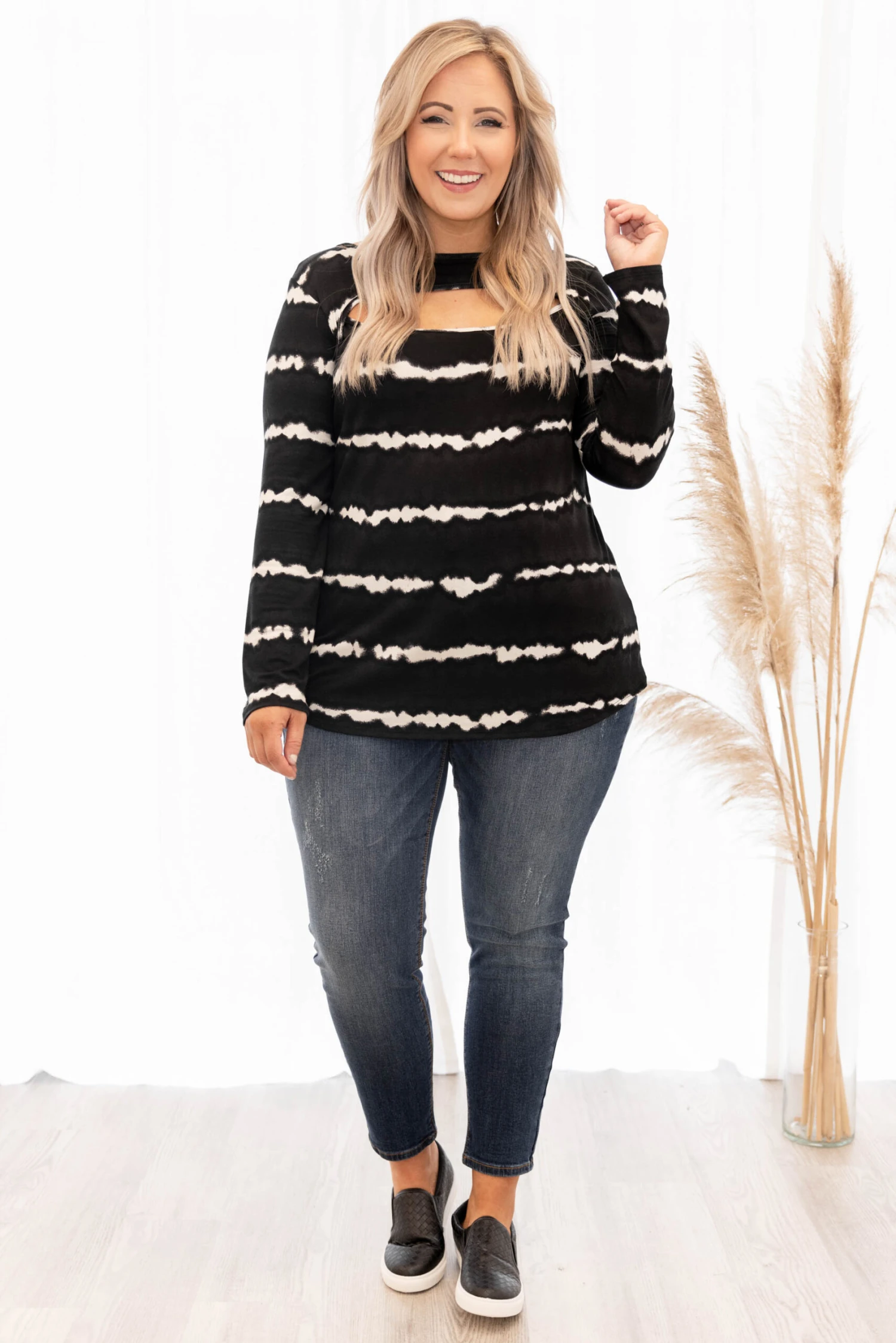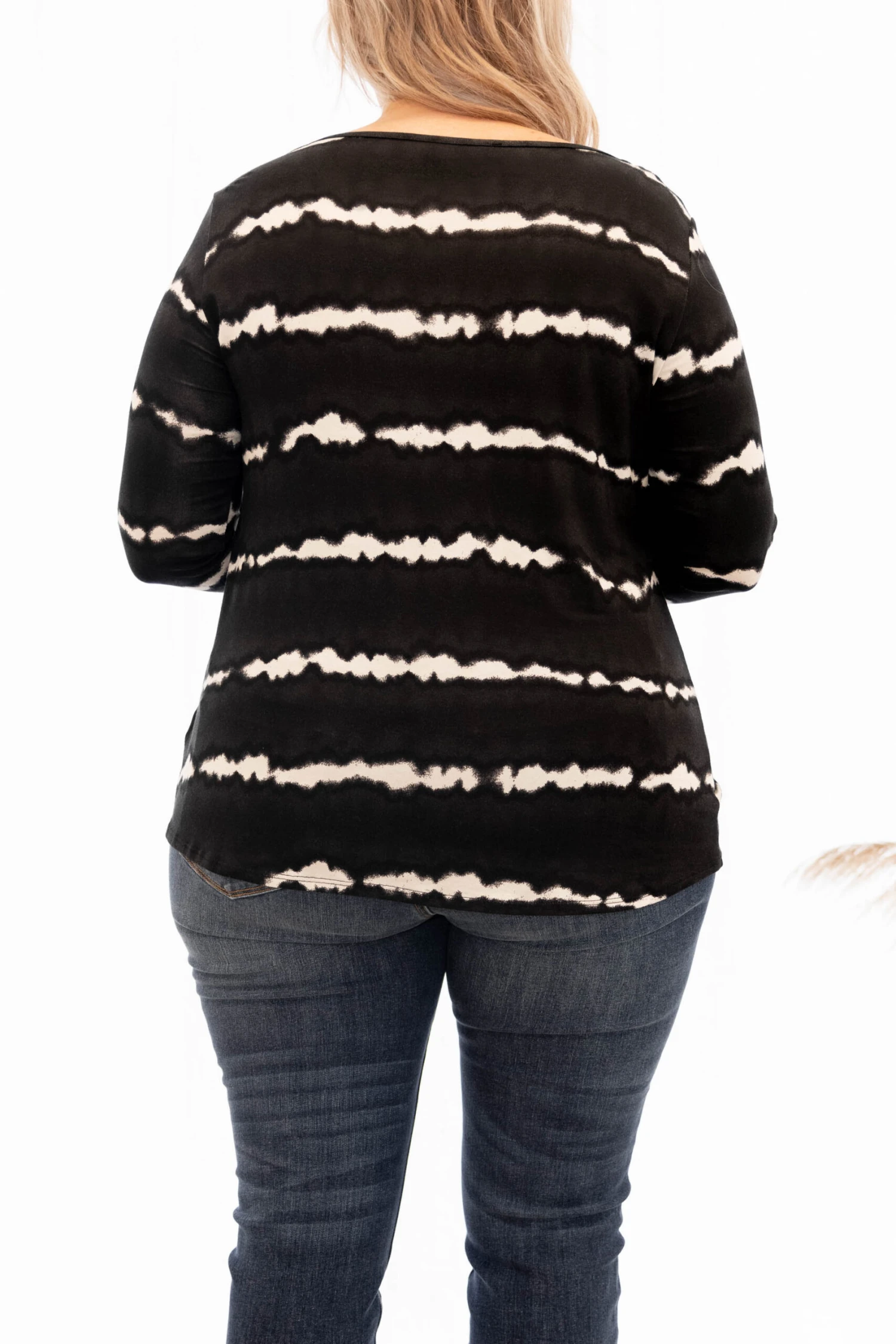This top is great for our nights out! We promise you will fall in love with this cute and comfortable striped tie-dye top! It has the comfiest fabric and a casual, relaxed fit. You’ll love tossing it on with skinnies on a nice Fall day!