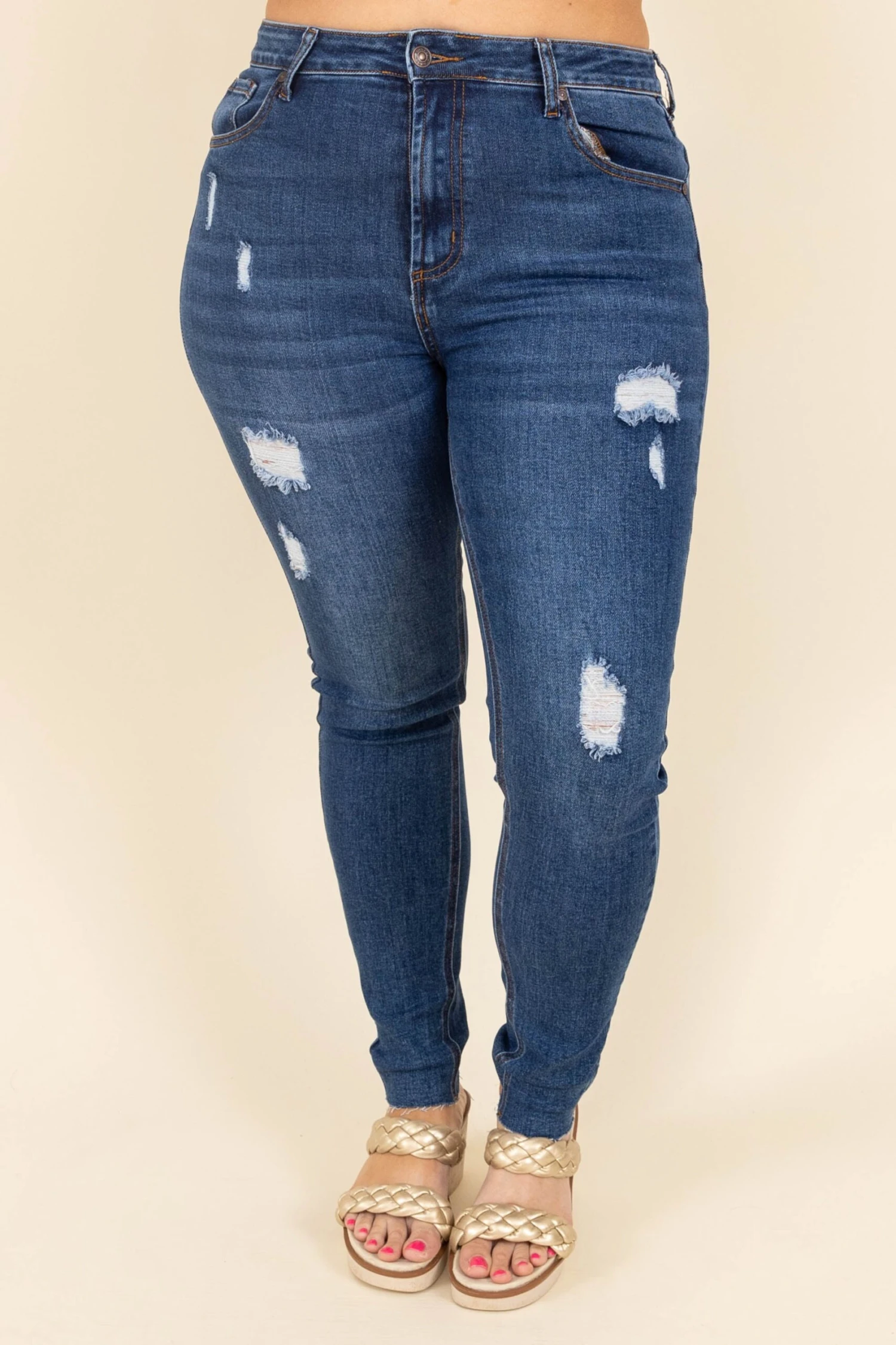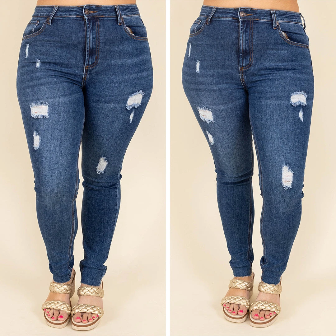 Leave behind last year’s fashion, and add these cuties to your wardrobe today! These jeggings have a medium blue color with a chic distressed design you can style with your favorite shoes and accessories! They are comfortable for all day wear and have a figure-flattering fit! These jeggings are a must-have for the season!