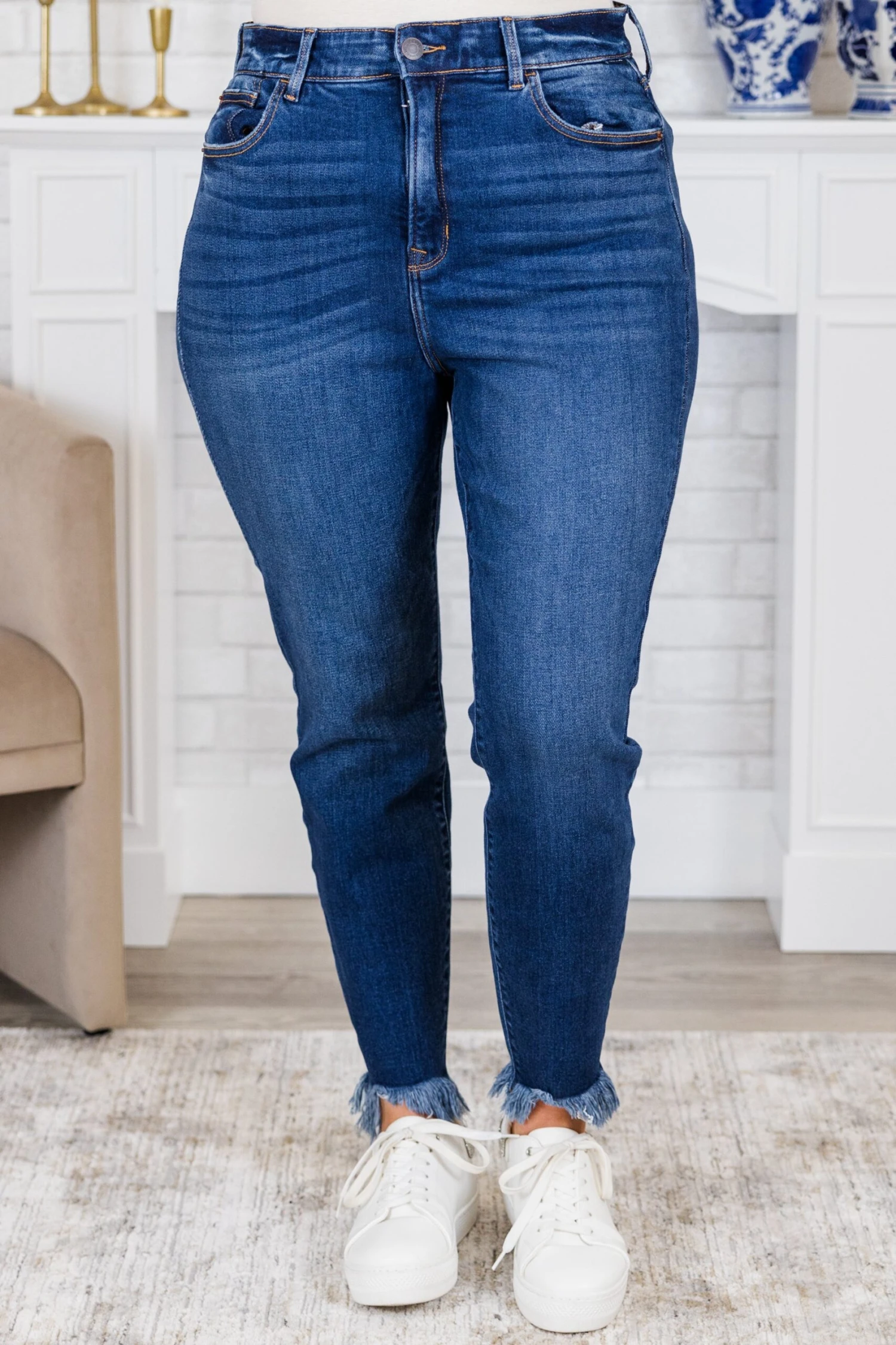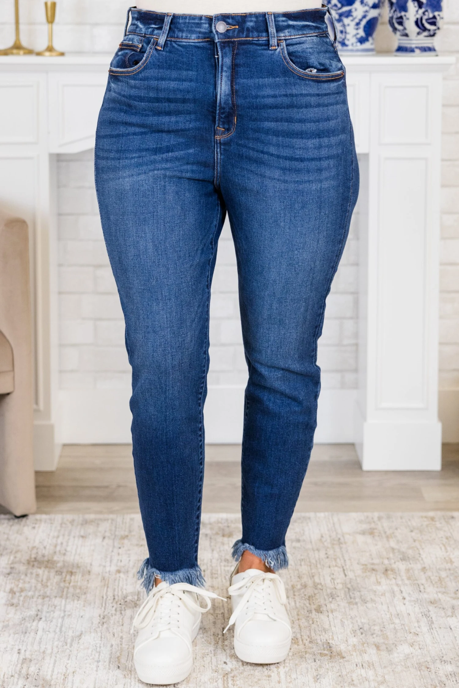 Get ready to hit the town in style with these jeans! These pull-on skinny jeans make getting ready a breeze! The dark wash adds a touch of sophistication, while the frayed hemline gives a playful touch! Grab a pair and let’s go places!