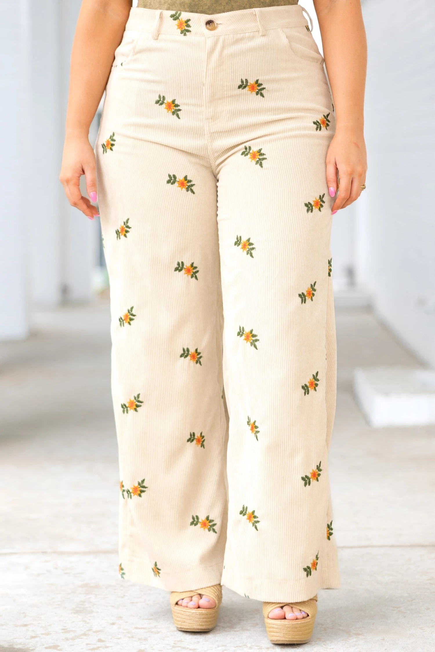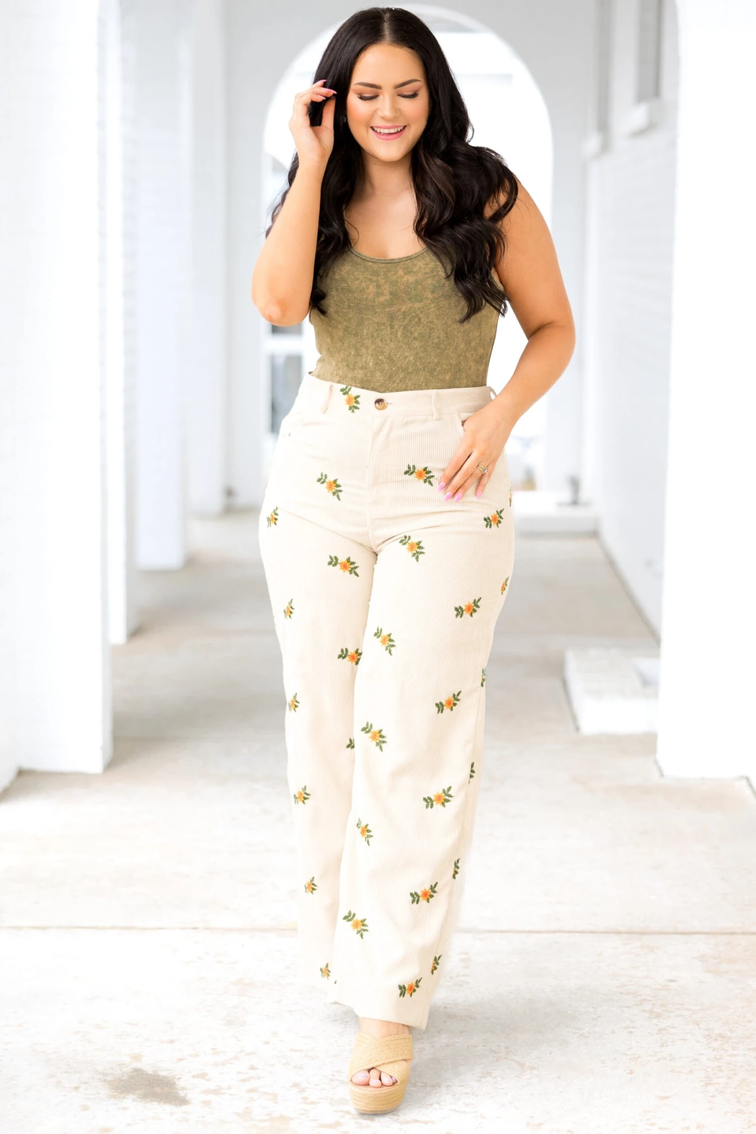 These FAB pants are an elegant choice for your wardrobe! Featuring delicate embroidery details and a textured design, these ivory pants are sure to make you look stylish and classy! Perfect for any occasion!