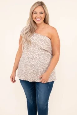 This top is made for our bold women! It has a trendy leopard print with neutral colors you can style for every occasion! It’s comfortable for all-day wear, has a flowy fit, and features the cutest one-shoulder design! Style this top with skinnies or shorts for an effortlessly chic look!Â