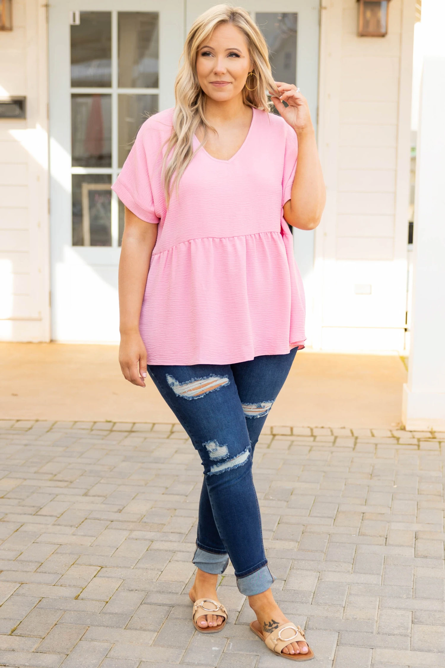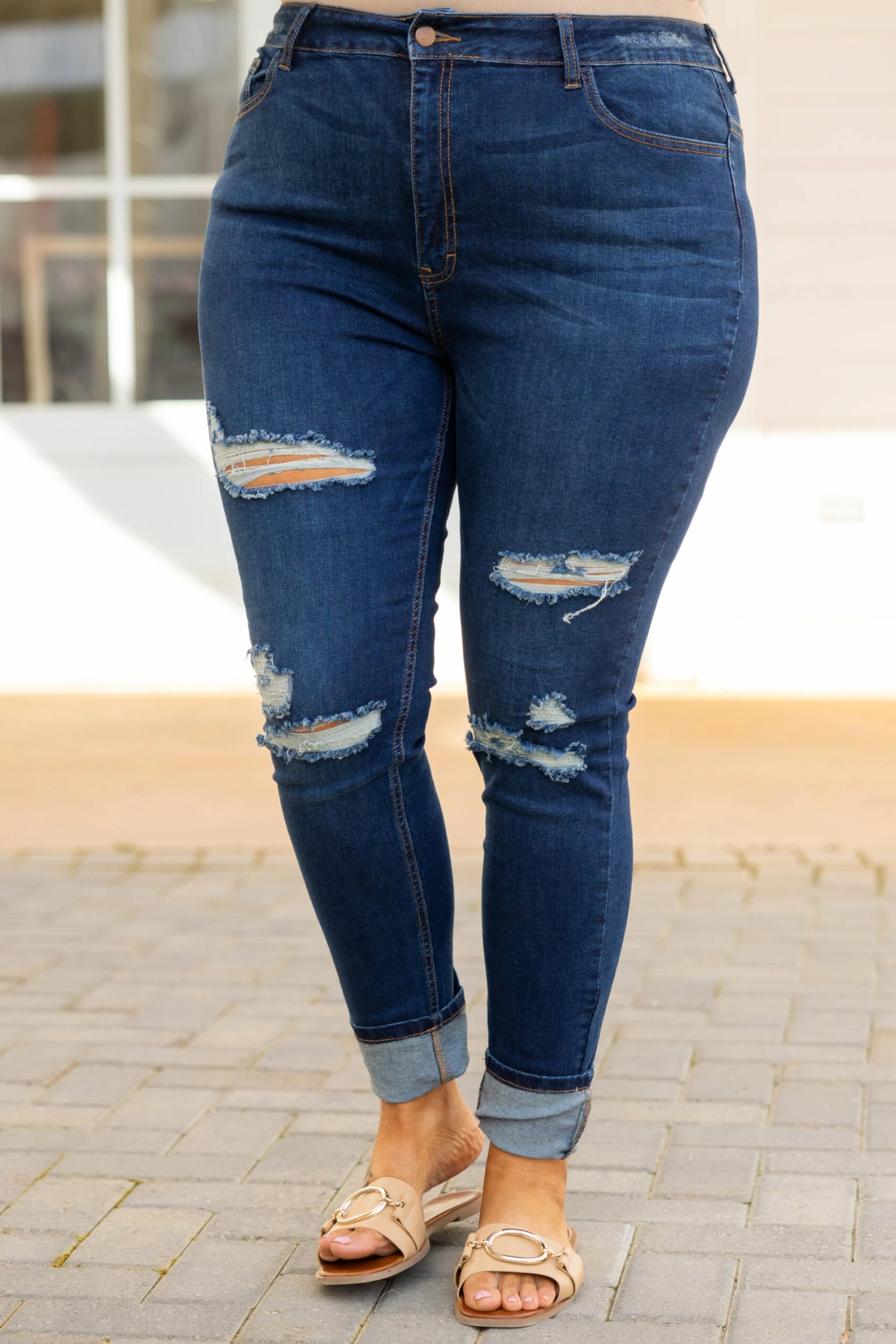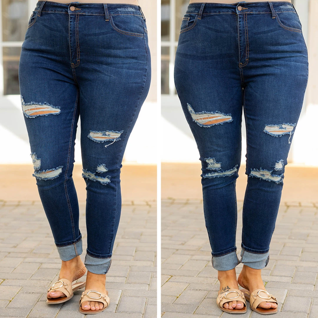 We heard a rumor that you will look so good in these jeans! These cuties has a dark wash color that is so classic and a distressed style that gives it a trendy spin! Wear these cuffed or uncuffed depending on how you are feeling just throw on a sweet top and some sandals and you are ready to go!