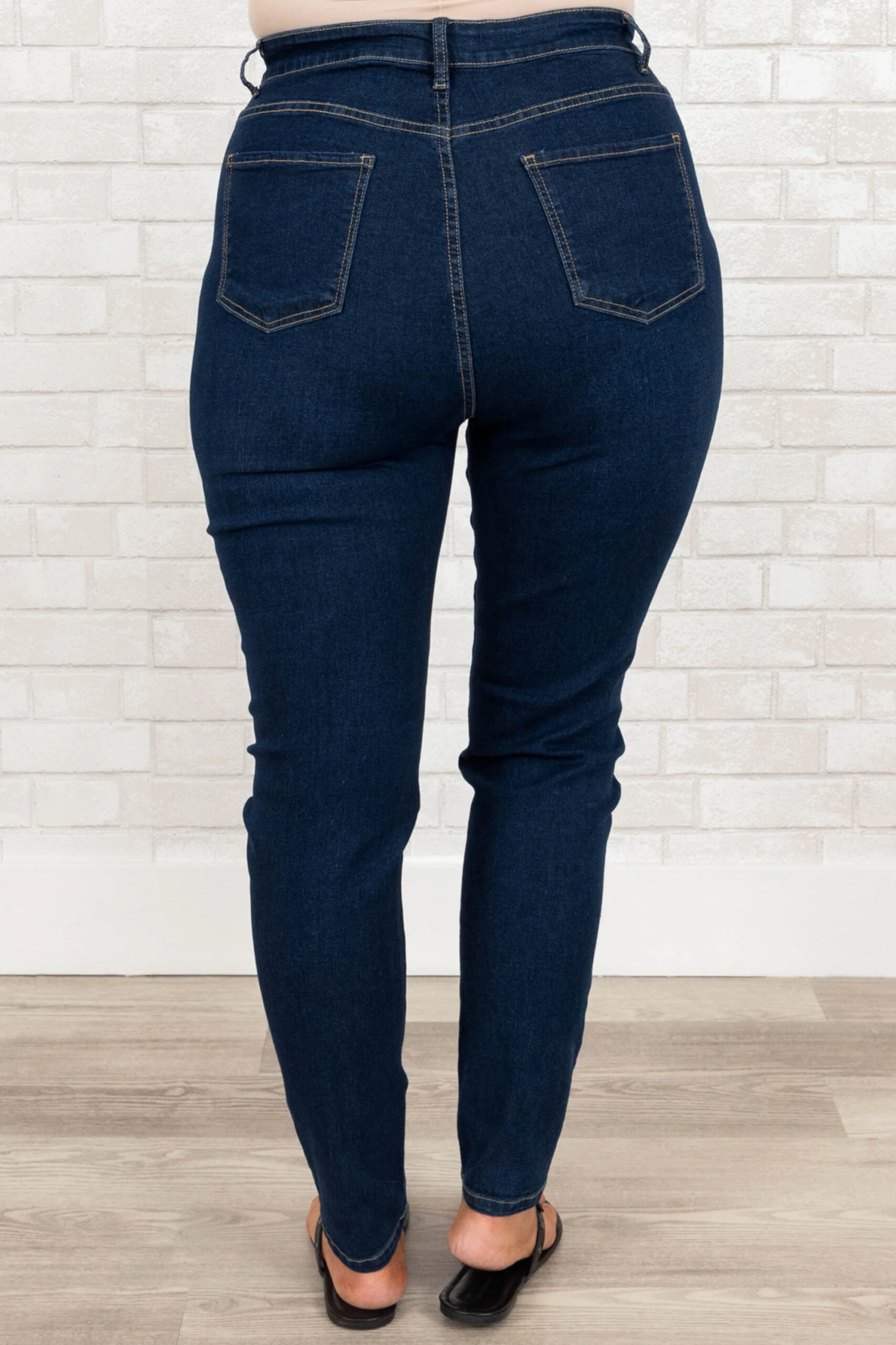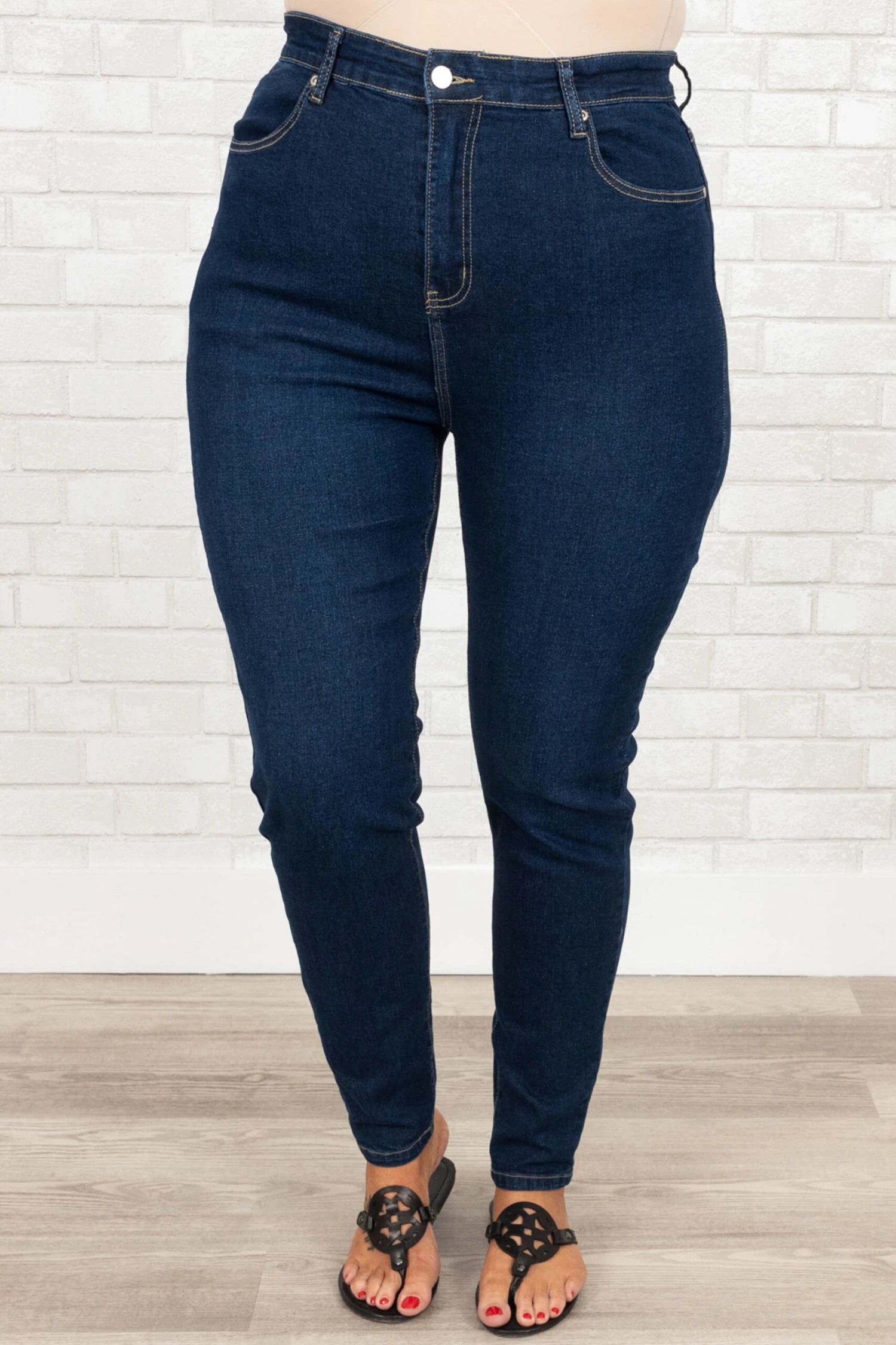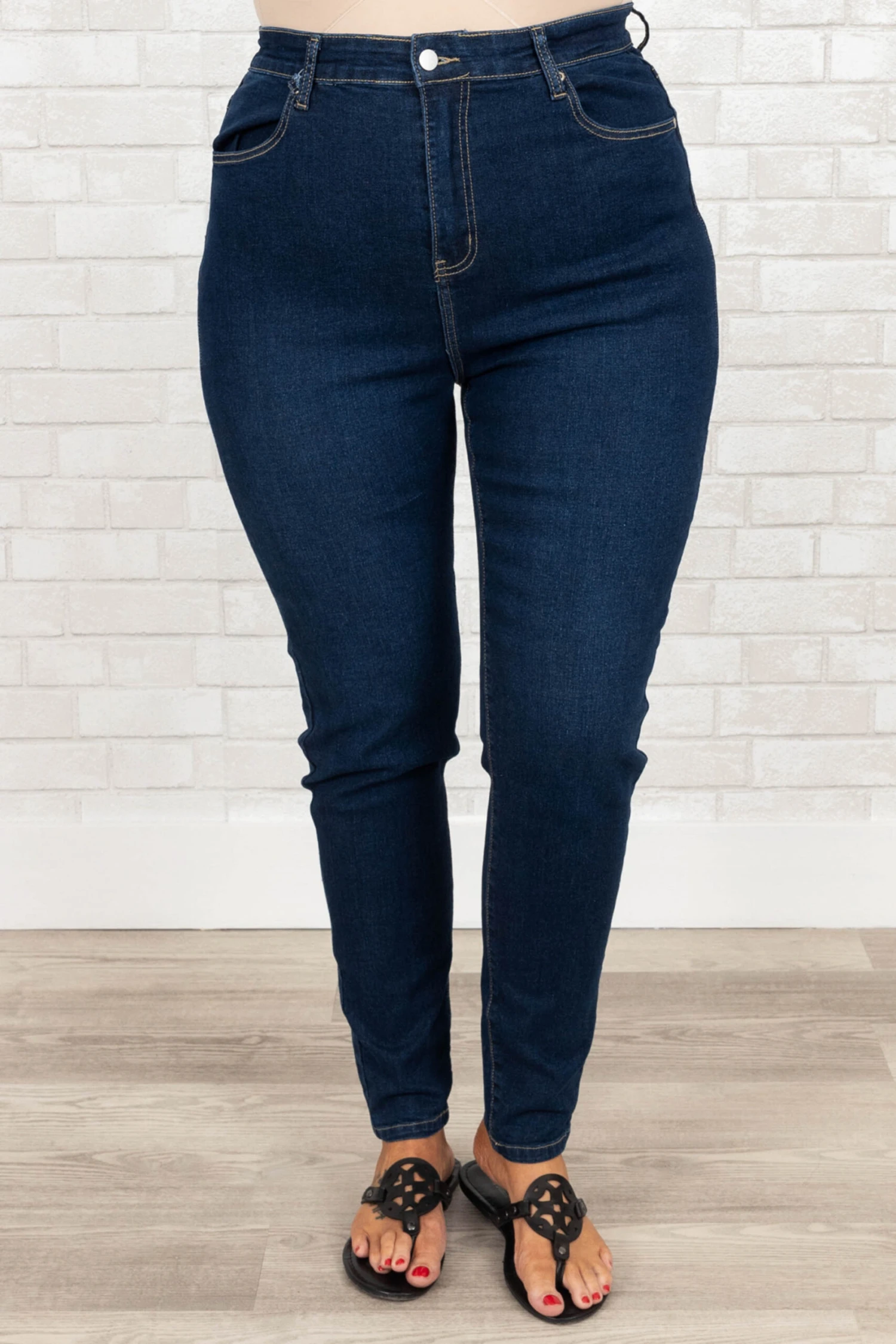 Make your way to the checkout with these gorgeous jeans! They have a trendy dark wash with a comfy, flattering fit that is perfect for styling with all of your favorite tops and shoes for the season! Simply pair these jeans with a cute graphic tee or a classy blouse for the ultimate chic look!