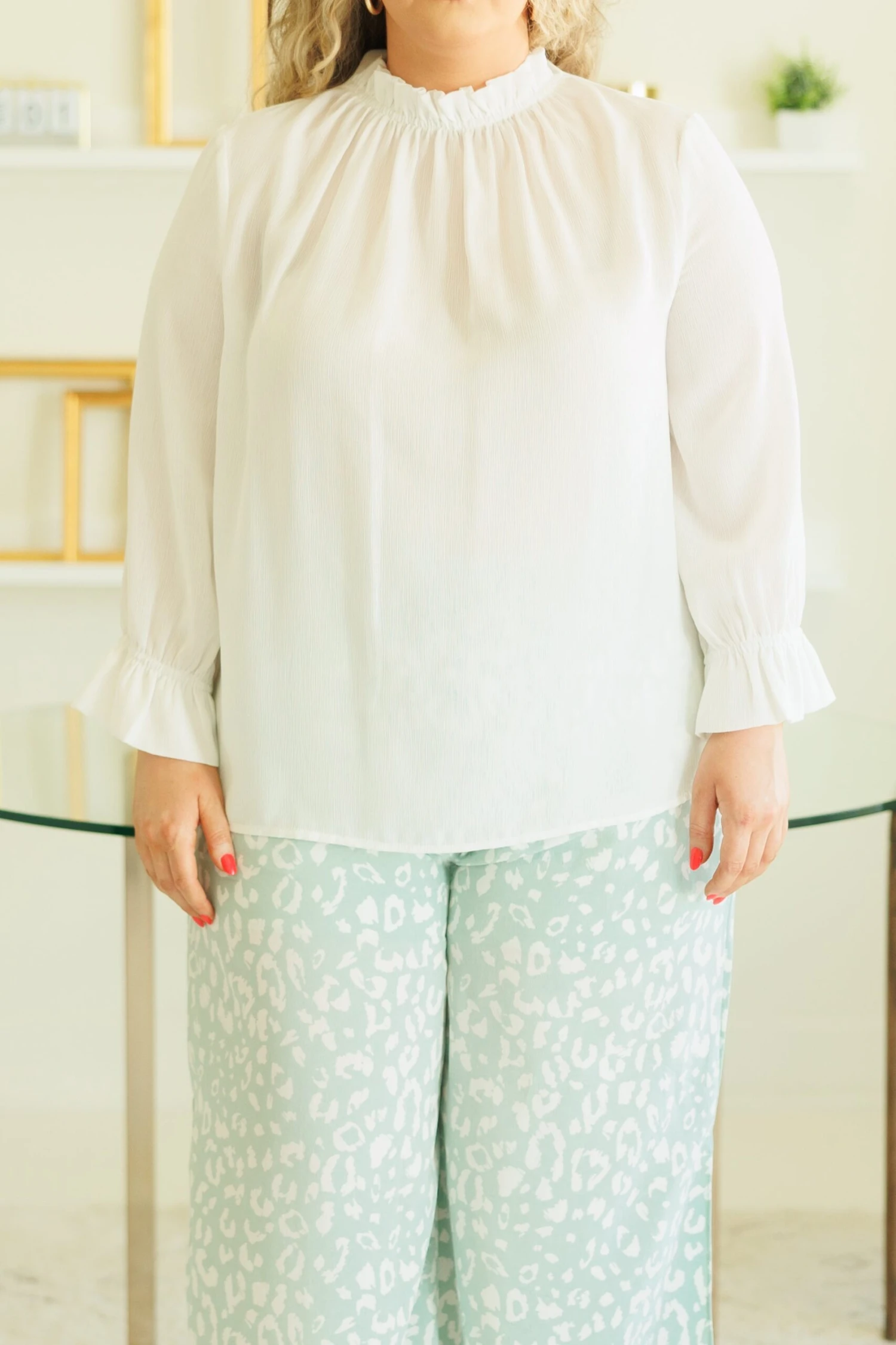 This FAB top is stylish and lightweight, making it a perfect choice for any occasion! Its high neckline ensures a sophisticated look perfect for the office or night out, while its white lightweight fabric makes it comfortable to wear all day!