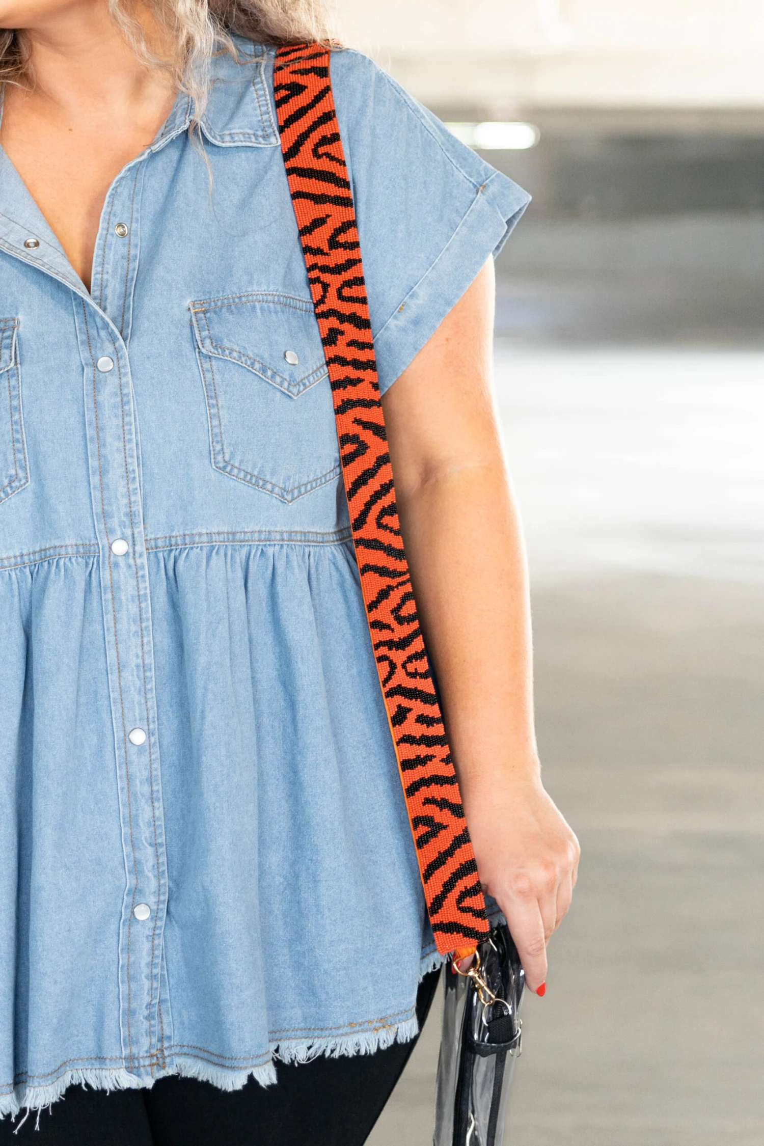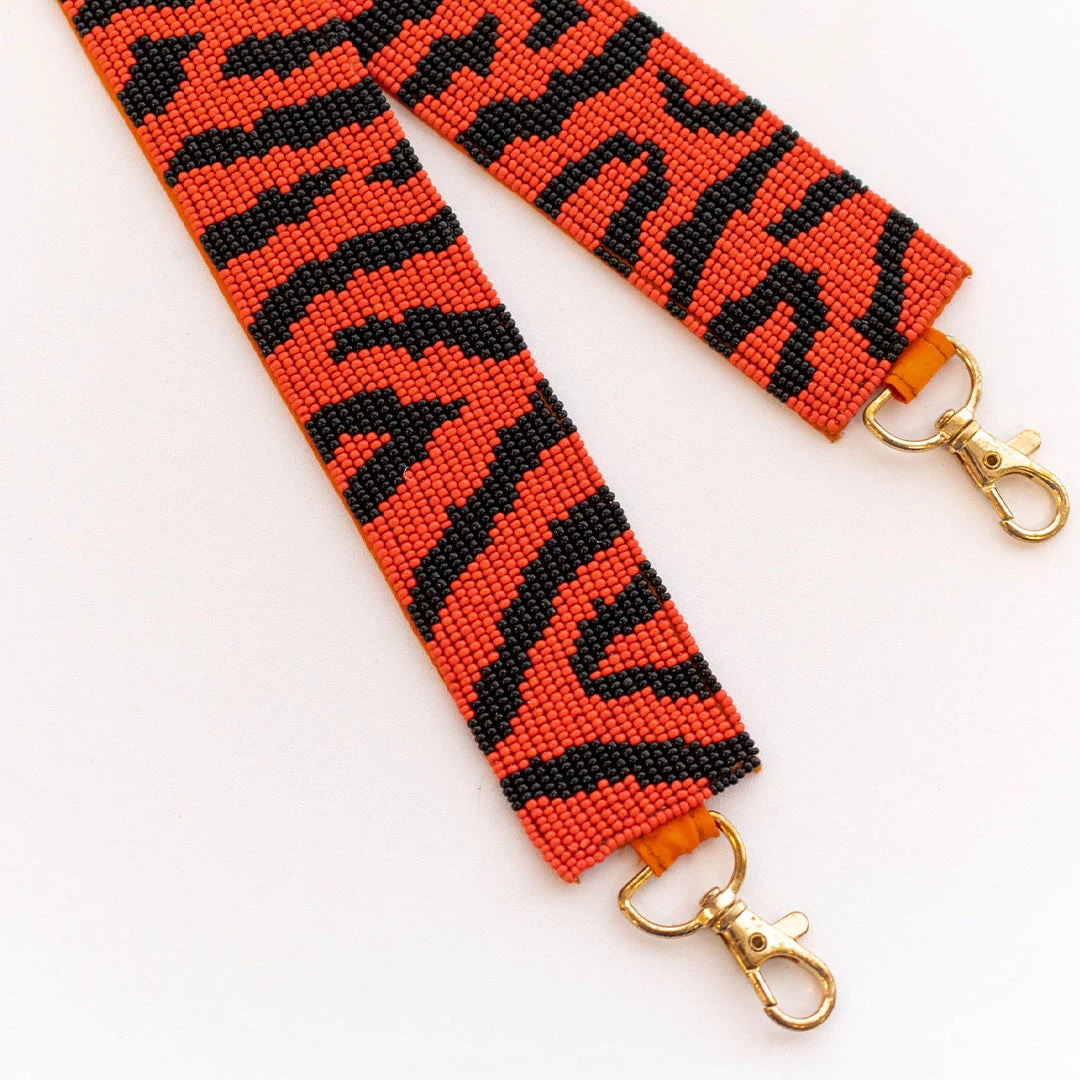 This purse strap is the perfect accessory to add to all your gameday gear this season! The orange color, tiger stripes, and beaded design are SO chic! Style this with your favorite purse and a cute gameday tee or dress for a fun, trendy look!
