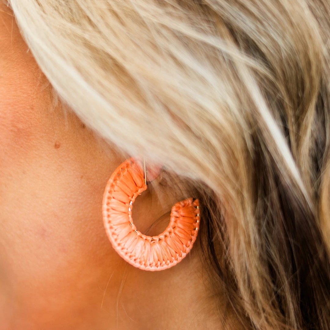 We simply adore these earrings! These orange-colored, open hoop earrings feature a stylish straw design that is so chic! Perfect for adding a touch of fun to any look, whether it’s a pretty dress or blouse! Elevate your fashion game with this must-have accessory!