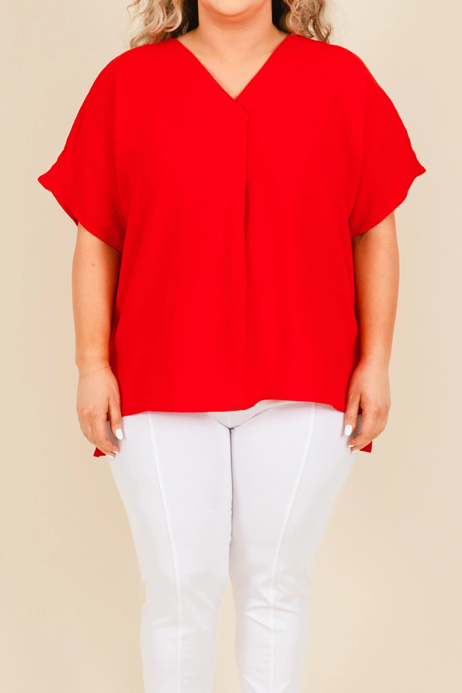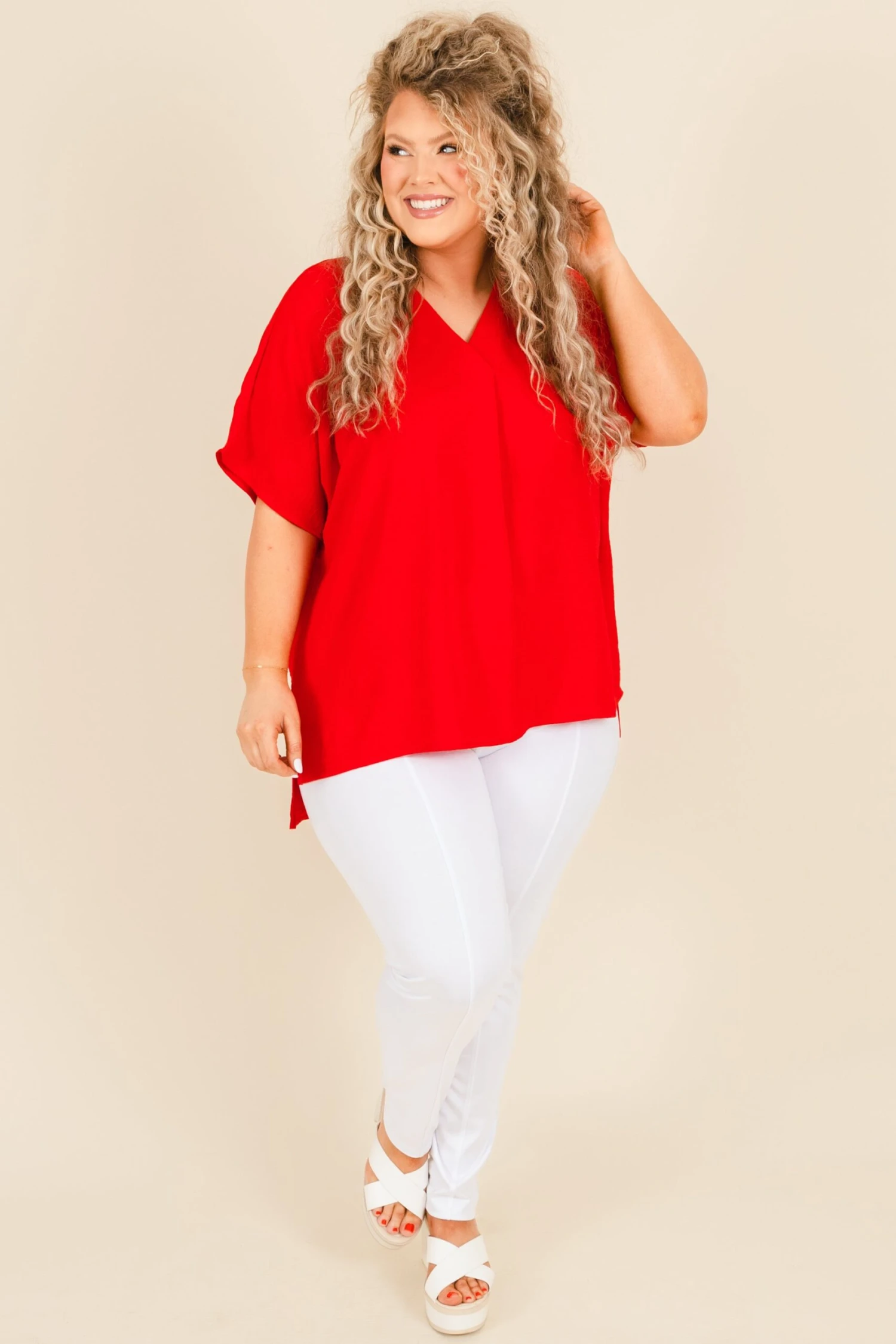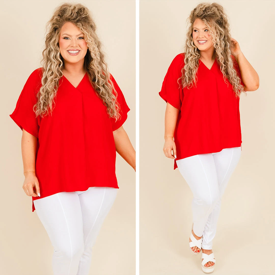 This beauty is the perfect fashion choice for the season! It features a flowy, light fabric that’s perfect for keeping you comfortable and stylish! The bold red color is sure to pair well with any look!