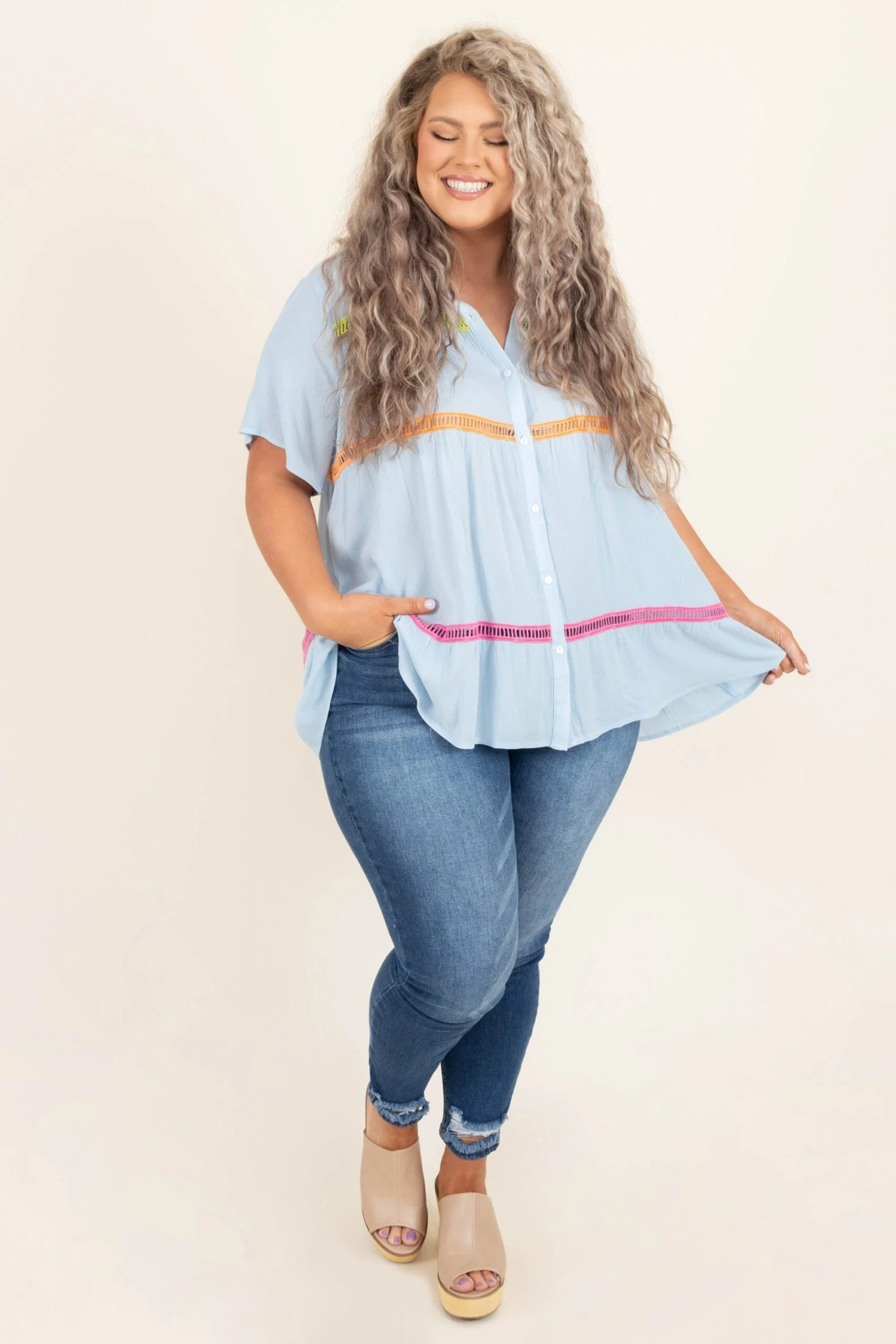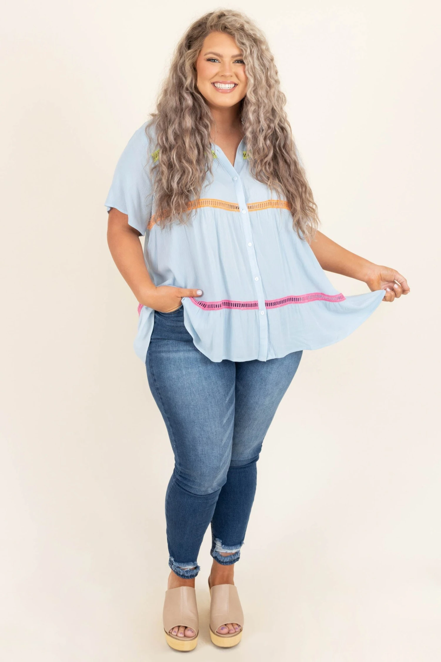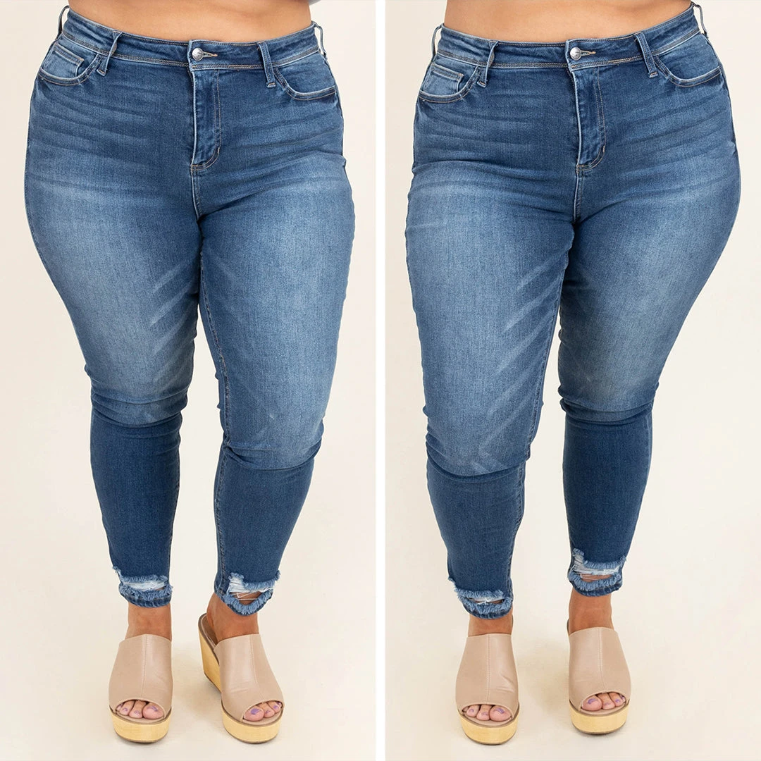 These jeans will be your new go-to! The dark wash color can match anything and the distressed hems are so cute! They can take you from work to dinner so easily! Style these with any top for an instantly chic look!