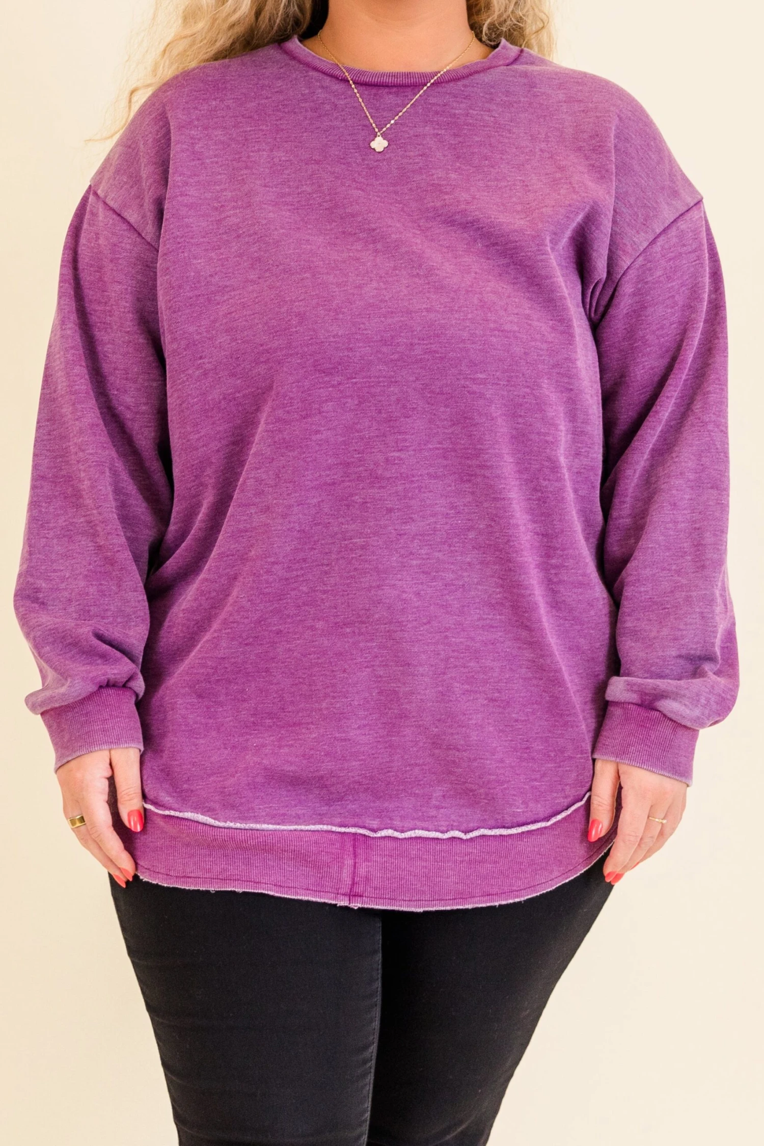 Achieve effortless style with this lovely tunic! Featuring a eggplant color and distressed seam, this tunic adds a pop of color and texture to your wardrobe! It pairs perfectly with white denim for a chic and trendy look!Â