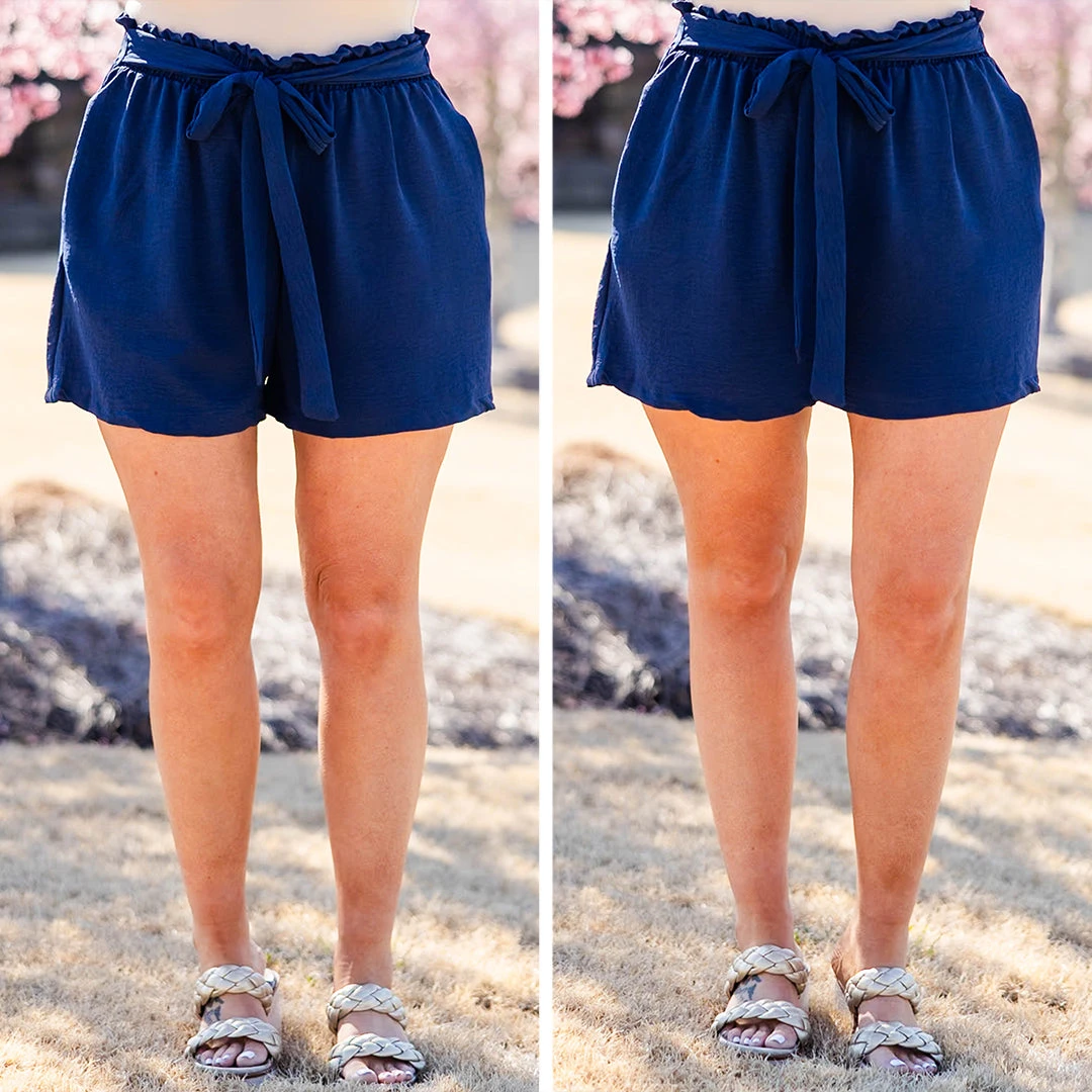 We speak the truth when we day these will be your new FAV shorts! The elastic waistband and waist tie provide a comfortable and flattering fit, while the gorgeous light navy color adds a pop of freshness to your wardrobe!
