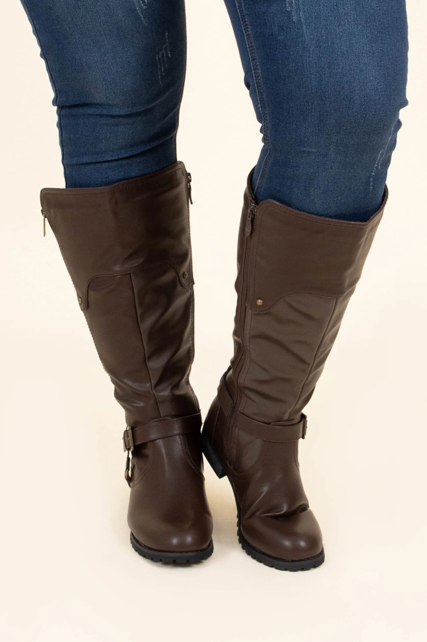 These beauties will widen your smile! These boots have a neutral brown color with a wide calf design that helps ensure a comfy fit! Style these boots with all of your favorite outfits this season for a trendy chic look!