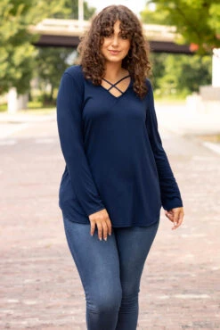 This top is oh so nice! It has a solid neutral color you can dress up or down for every occasion! It’s comfortable for all-day wear, has a figure-flattering fit, and features the cutest crisscrossed neckline! Simply style this top with skinnies and mules for an effortlessly chic look!