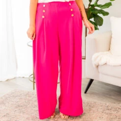 Effortlessly elevate your wardrobe with our Never Be Outdone Pants in bold fuchsia! The high waist and elastic waistband ensure a comfortable and flattering fit, while the gold button detail adds a touch of sophistication! With a wide-leg design, these pants are perfect for both the office and a night out. Take your style to new heights!