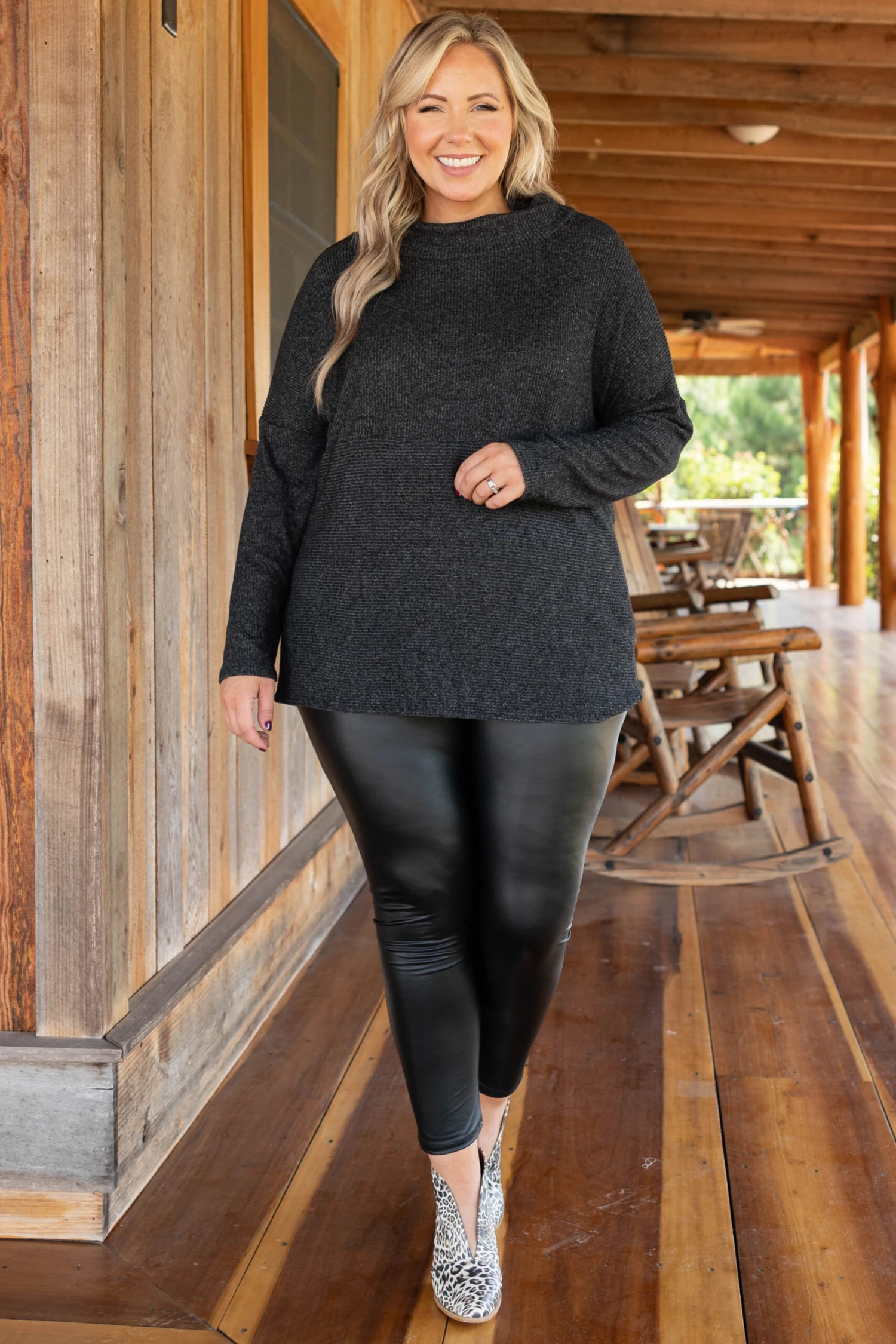 You will never want to leave home without this top! This top makes the perfect layering piece! It is soft, has the perfect amount of stretch, and will be comfortable for all-day wear! This top is perfect to layer with a cute vest or jacket! You can even add a pop of color to your accessories or shoes! Pair this top with your favorite pair of jeans or faux leather leggings for an effortless, chic look!