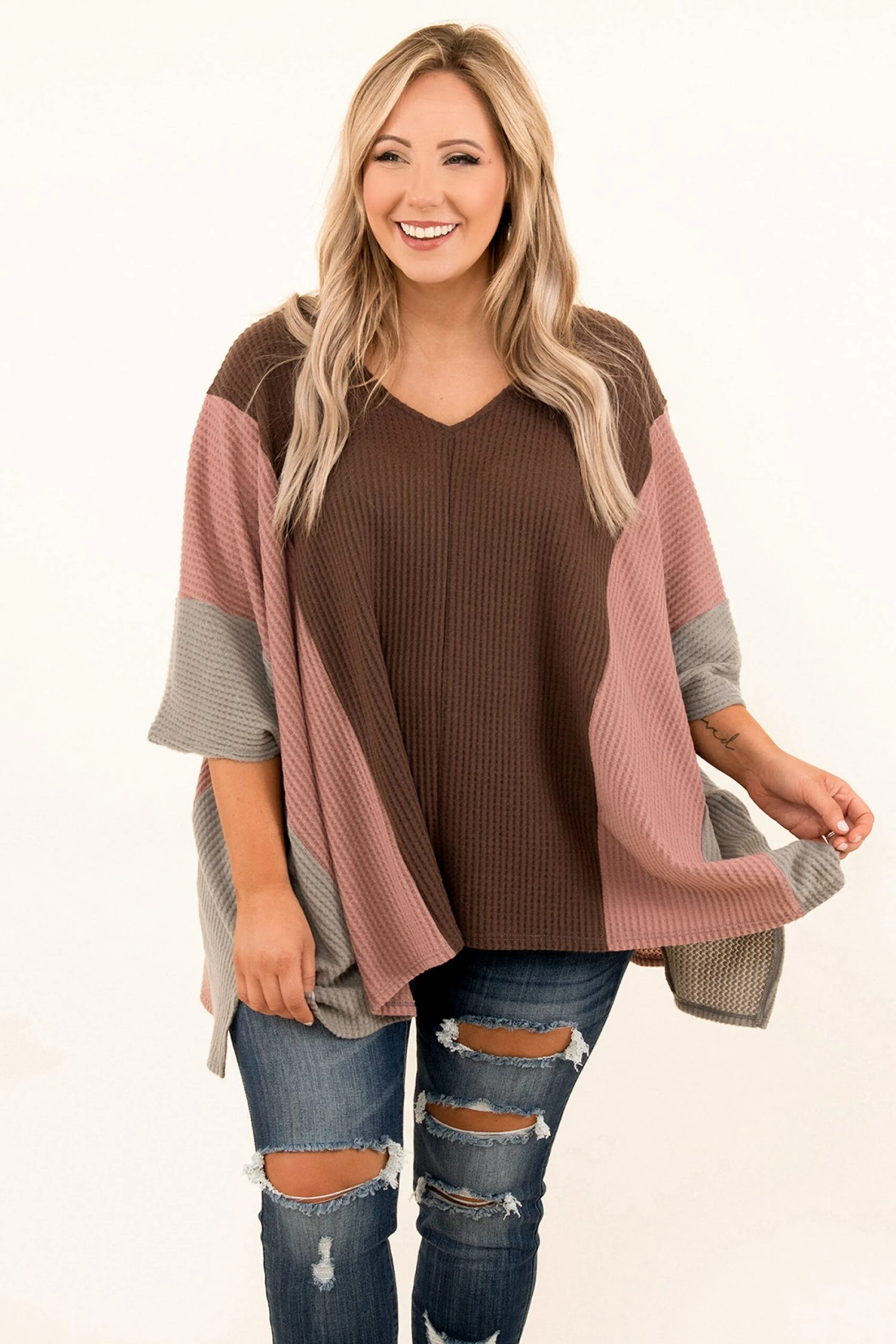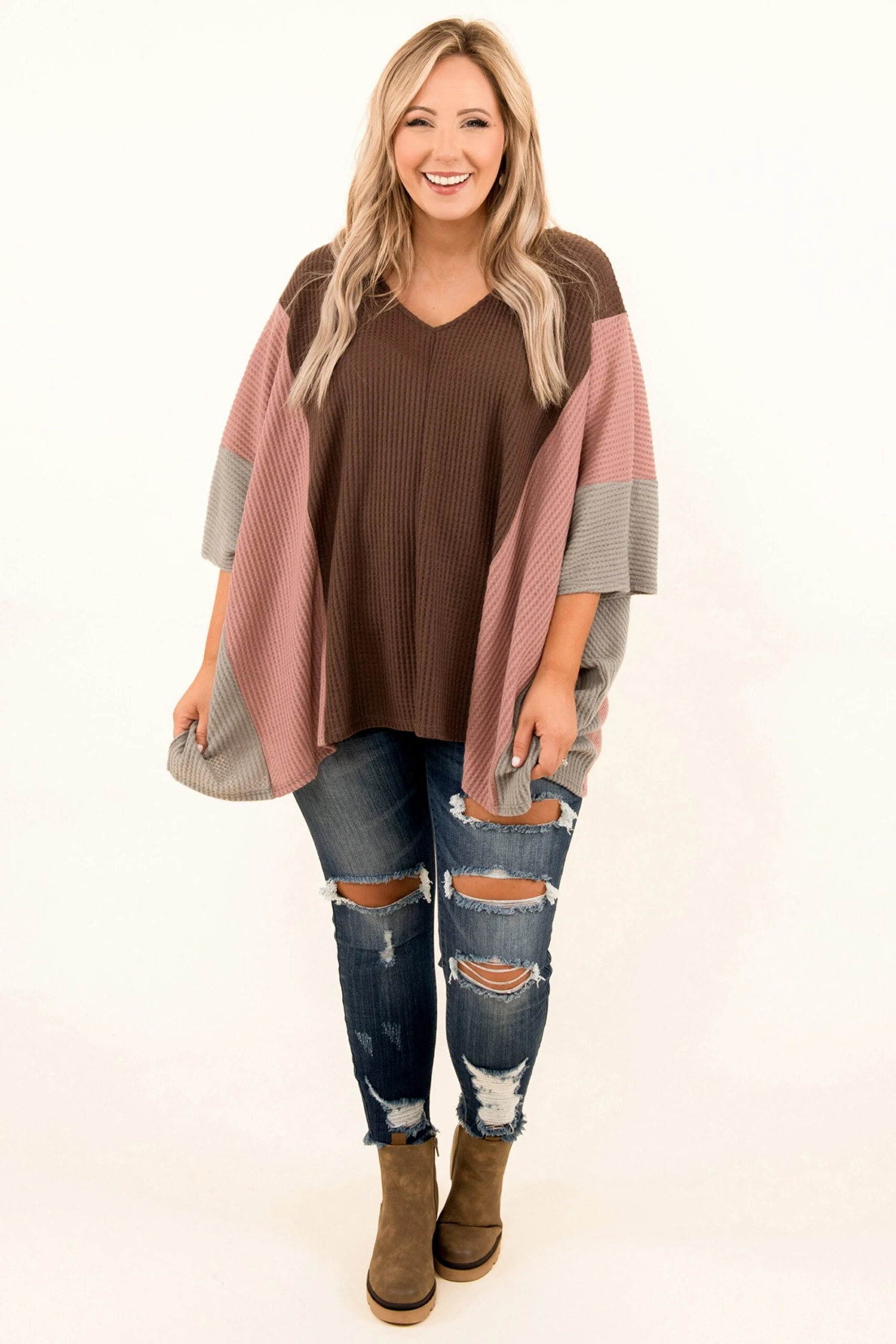 There’s no poncho like this one! It has a bold pattern you can dress up or down and style for every occasion! It’s comfortable for all-day wear, has an oversized fit to flatter your figure, and can be styled with your favorite pieces! Simply pair this poncho with leggings or skinnies for an easy everyday look!