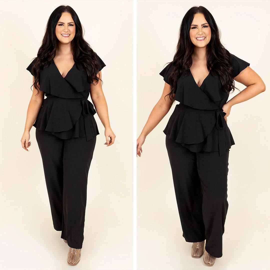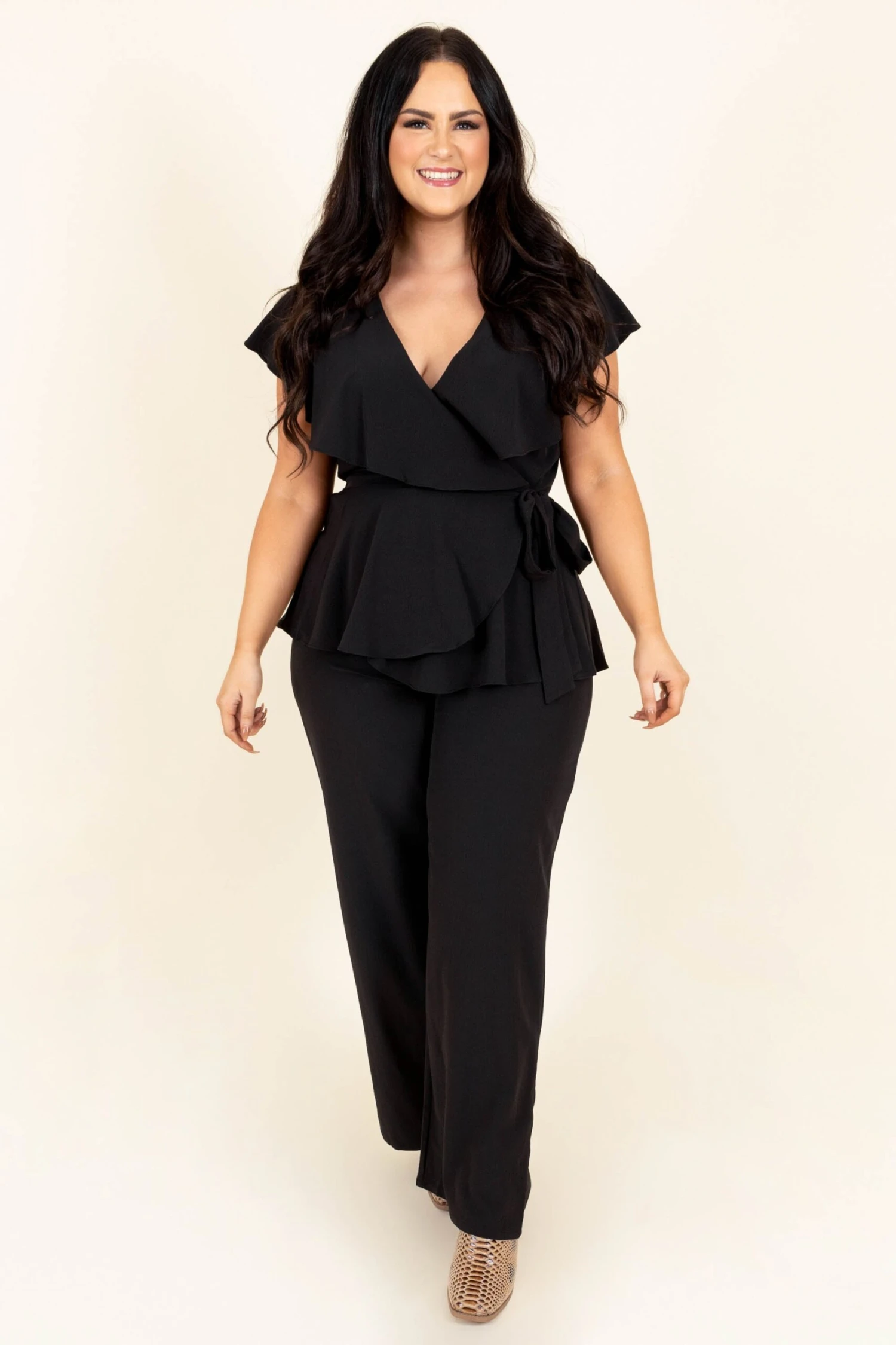 Take your wardrobe to the next level with this gorgeous jumpsuit! This jumpsuit has a classic black color with SUPER chic flutter sleeves! The vibe of this jumpsuit will have you looking super fierce! Style this jumpsuit with some heels and cute accessories for an effortlessly fabulous look!Â