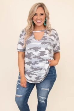 There are no boundaries to the fun you can have in this top! This top has a trendy camo print pattern with neutral colors you can dress up or down! It’s comfortable for all day wear, has a figure-flattering fit, and features the cutest neckline! Simply, style this top with skinnies or shorts for an effortlessly chic look!Â