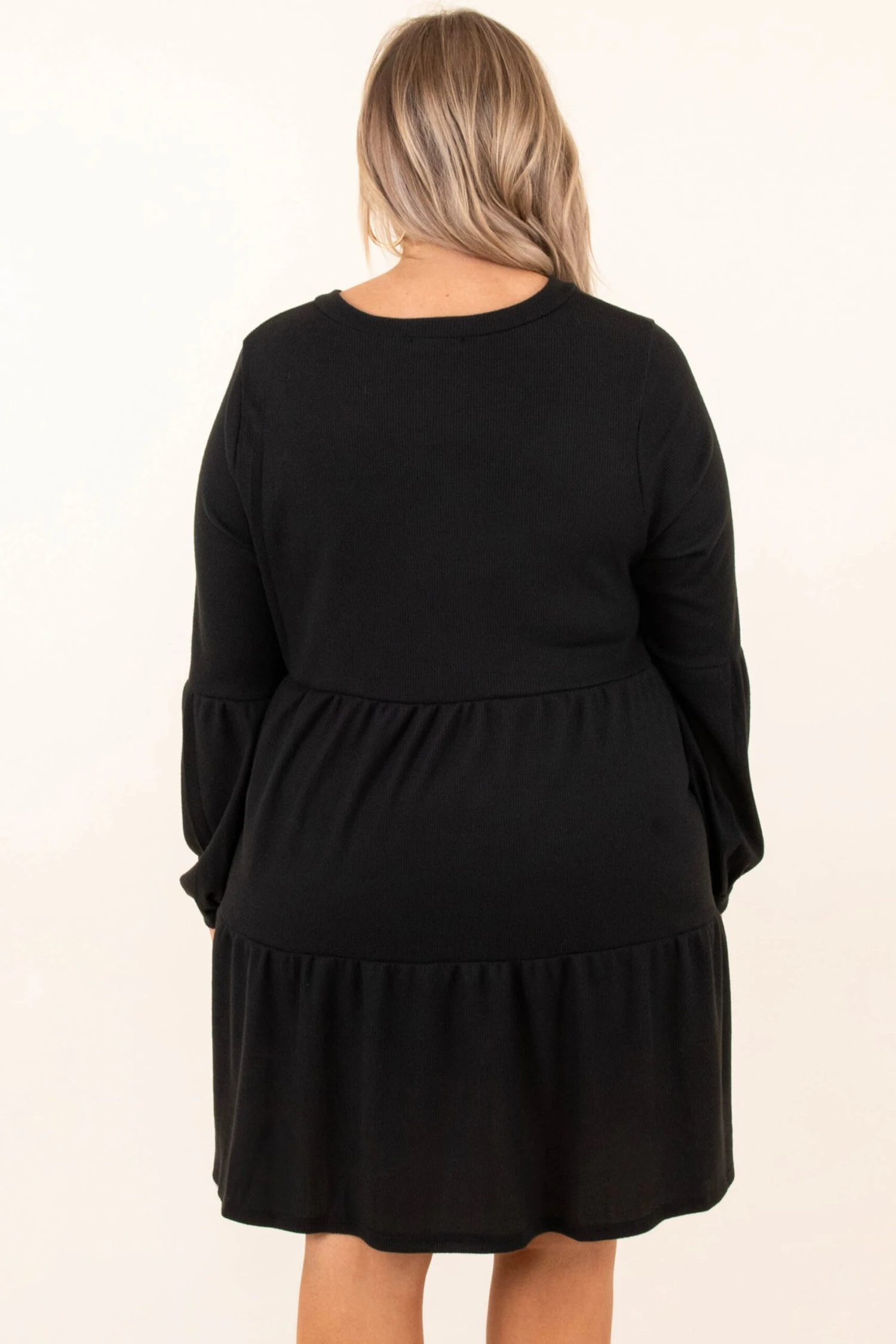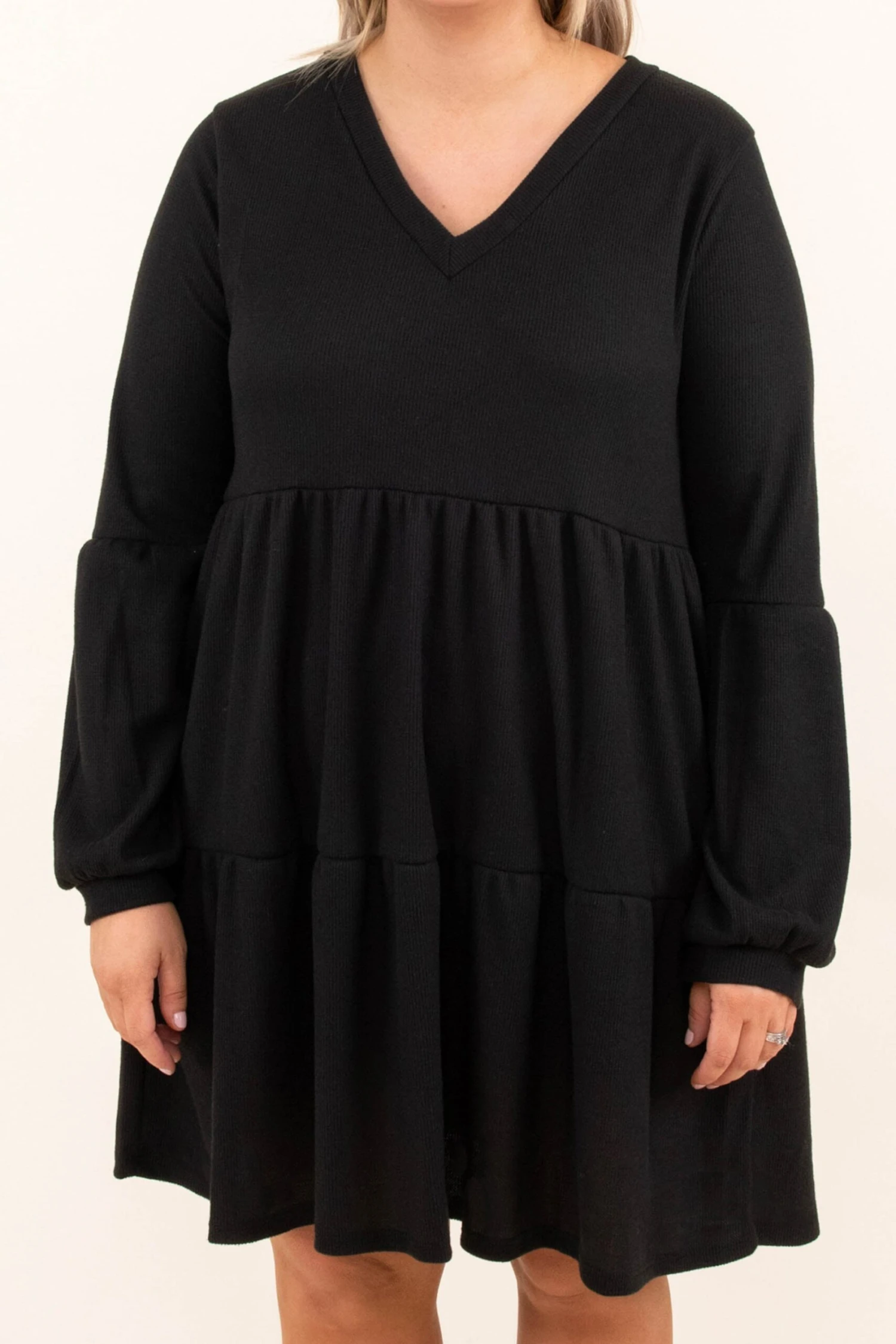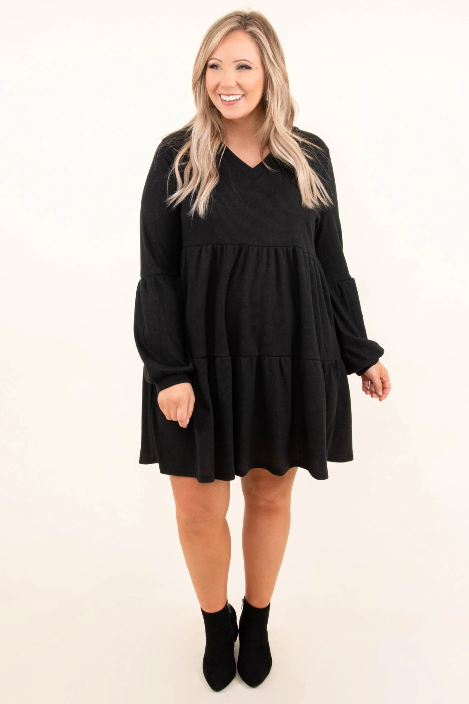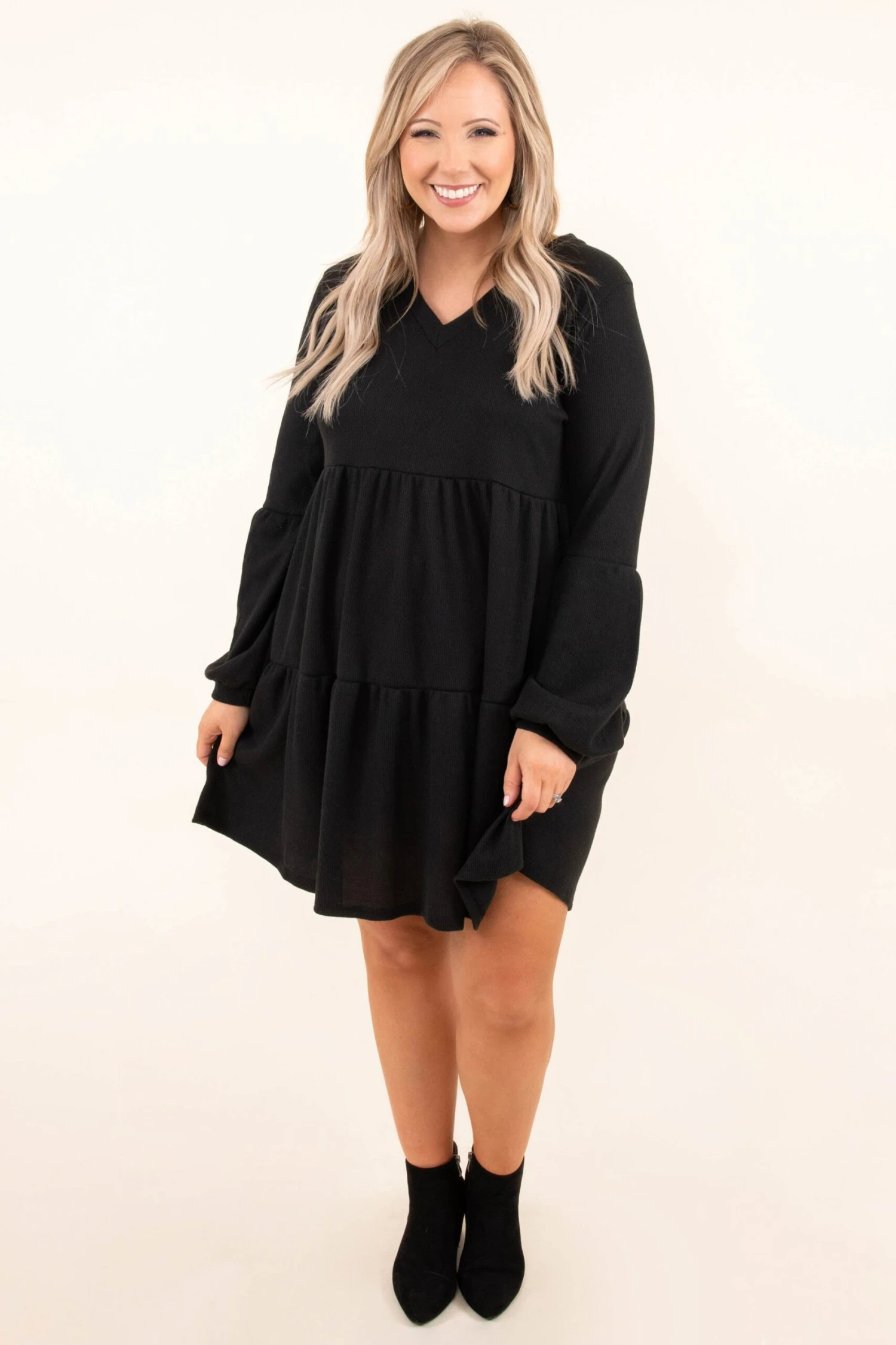 This dress will definitely win all your love! This dress has a solid black color you can dress up or down for every occasion! It’s comfortable for all-day wear, has a figure-flattering fit, and features a v-neck neckline! Style this dress with booties or heels for your next event! Â