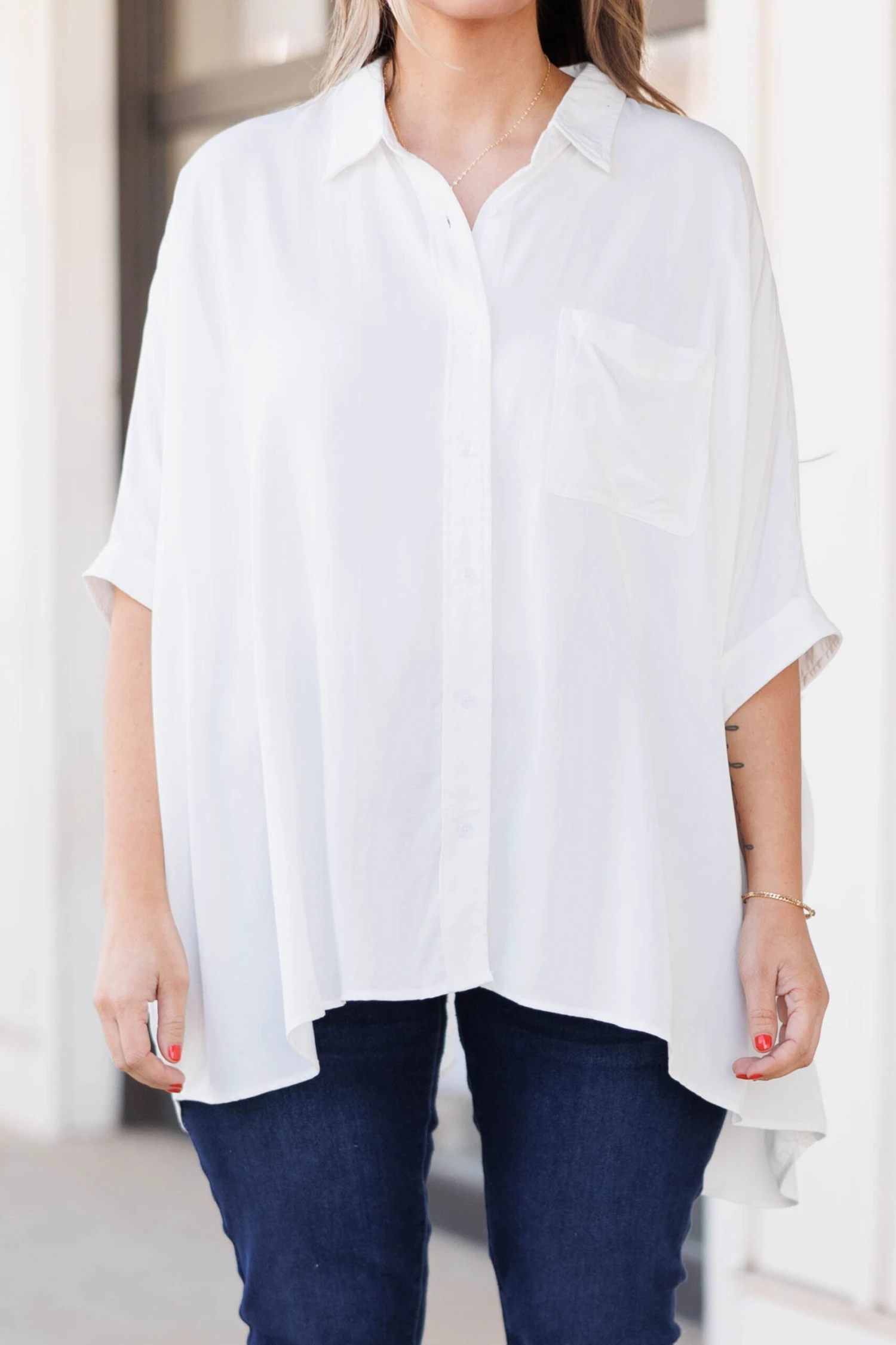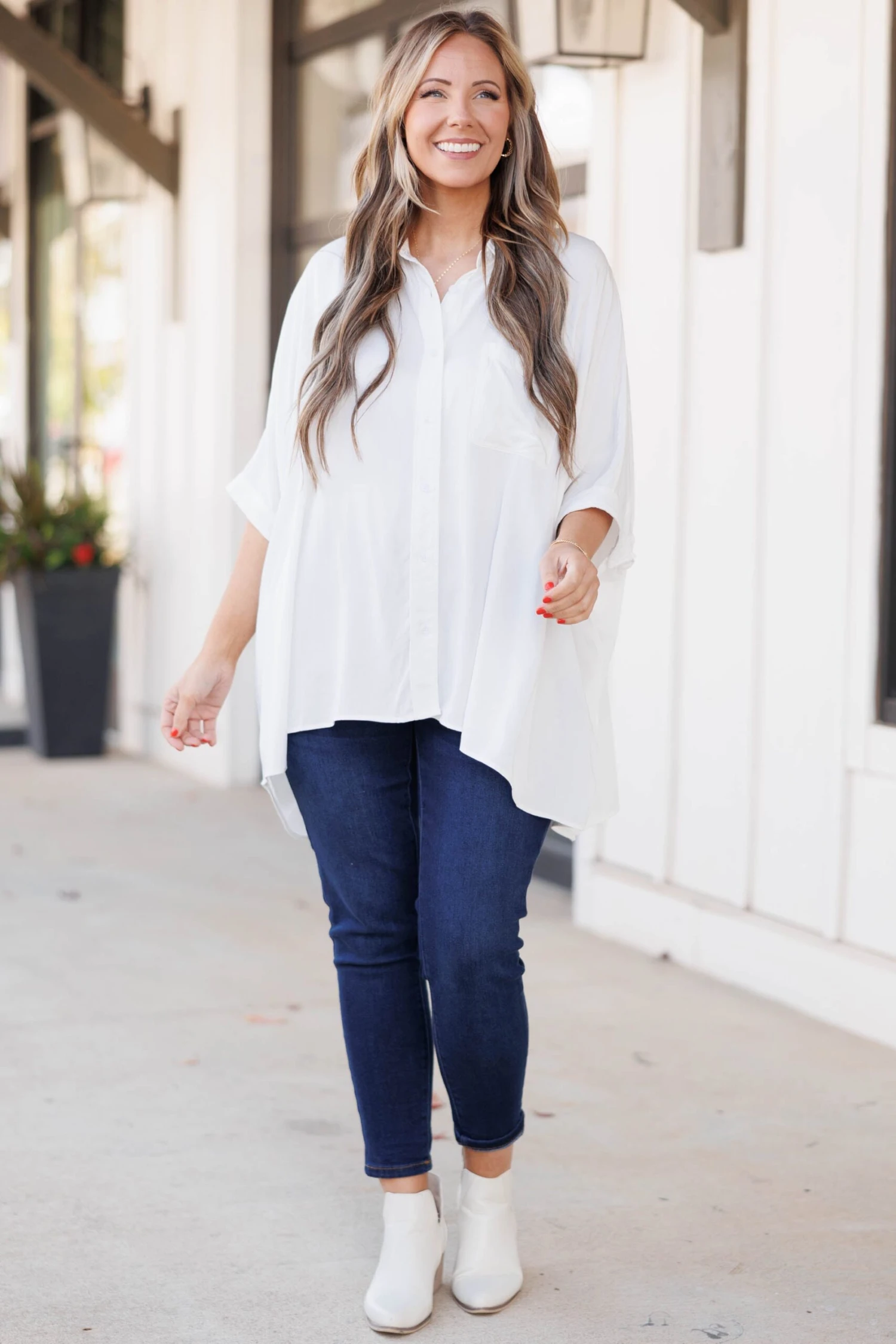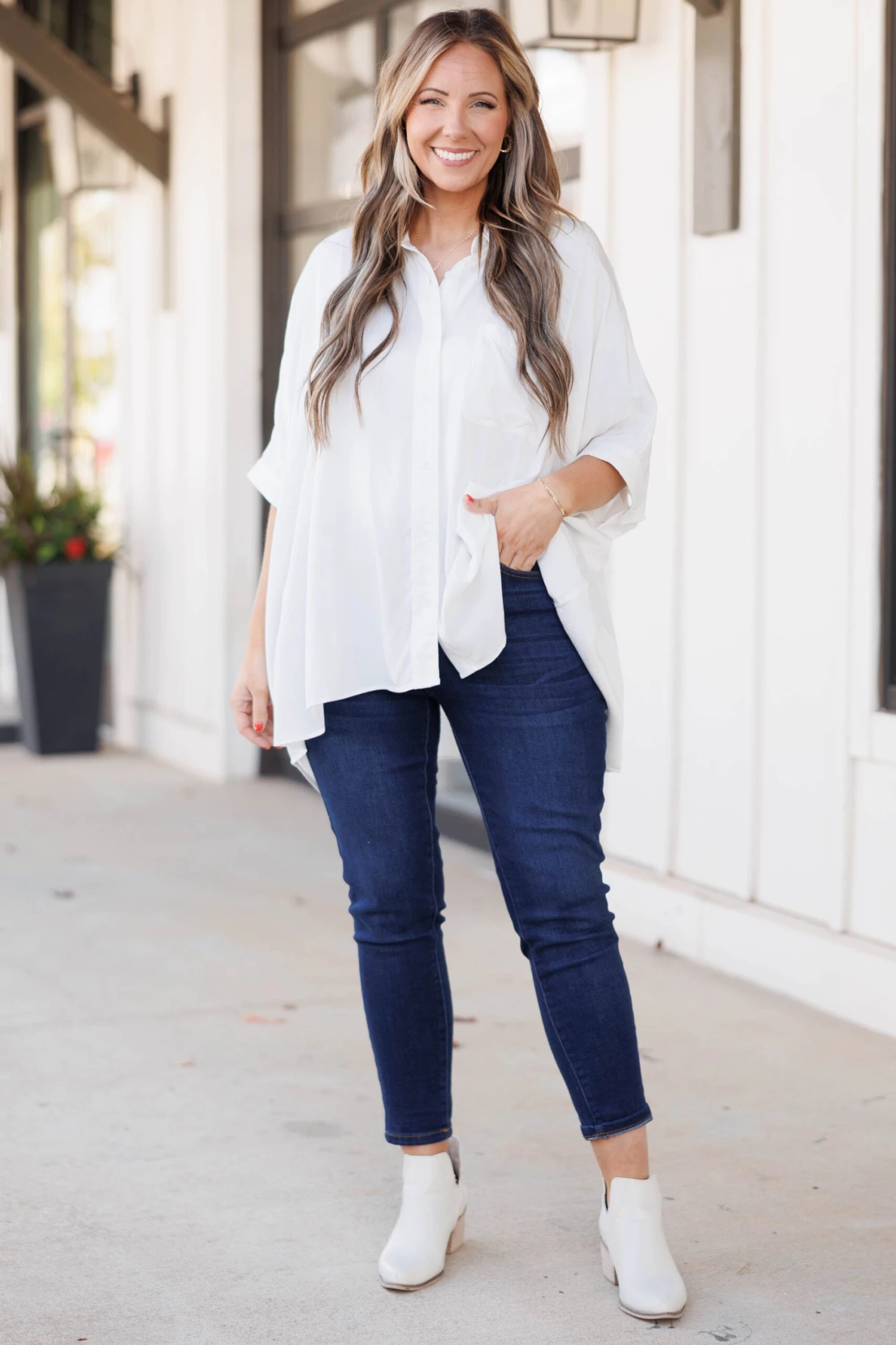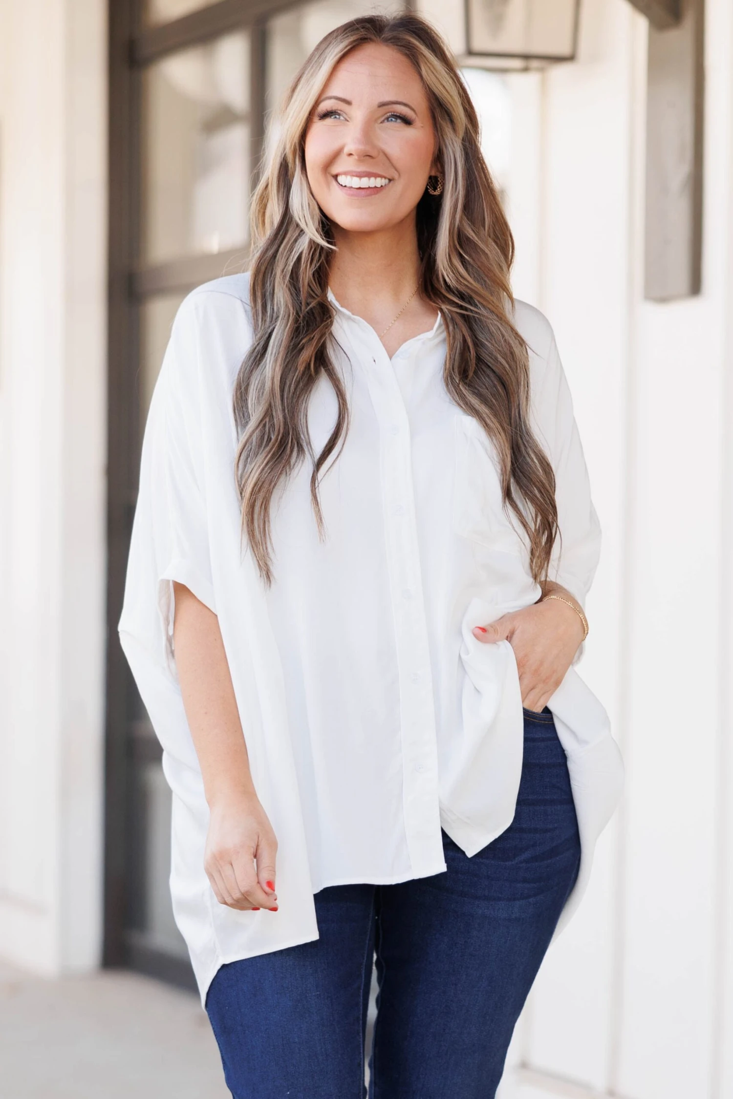 You don’t have to be patient, you can grab this beauty right now! This top is a wardrobe must-have with a flowy fit and batwing sleeves for a modern, sophisticated look! In a timeless cream hue, this top is easy to style for any occasion – it pairs perfectly with both skinnies and patterned pants!