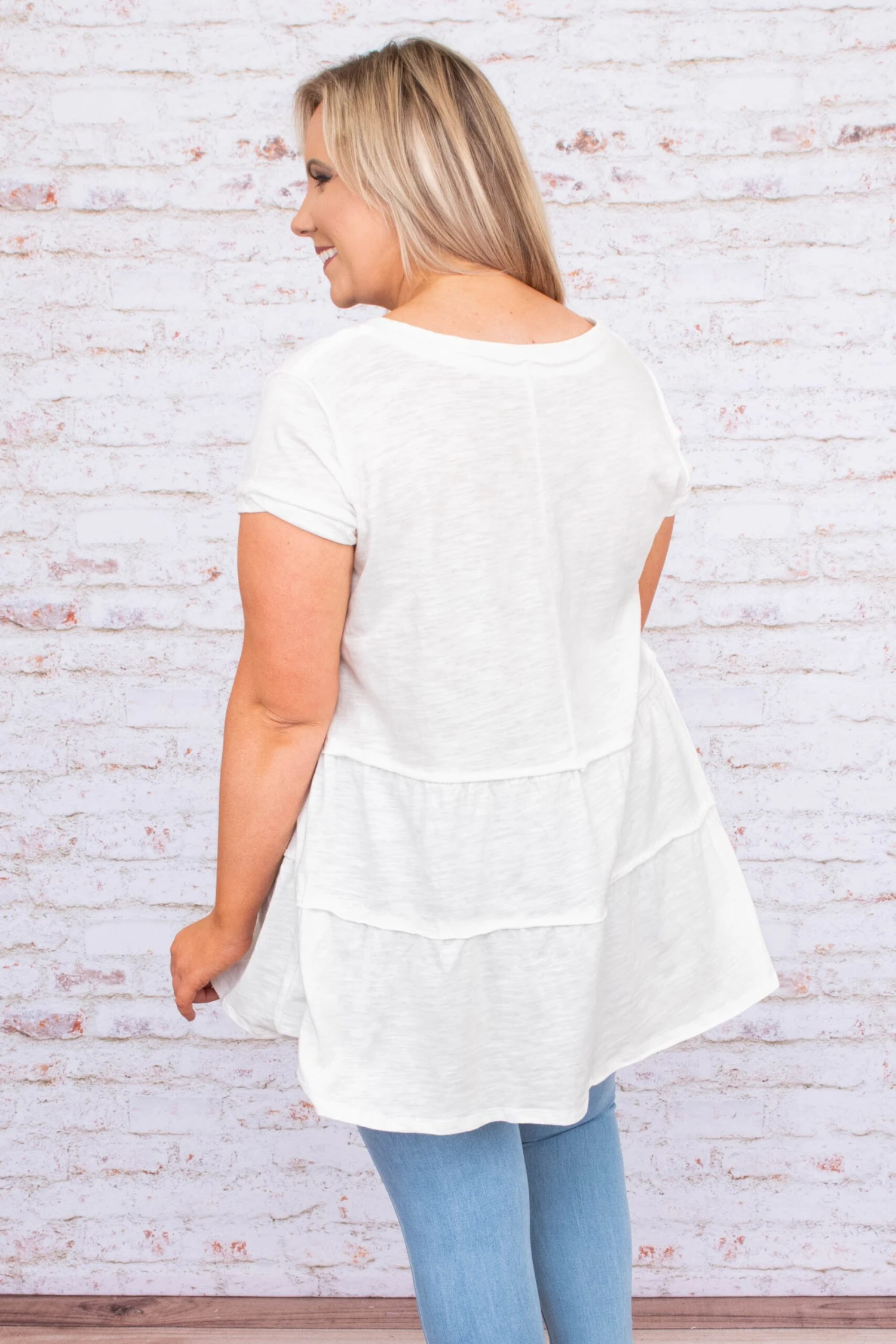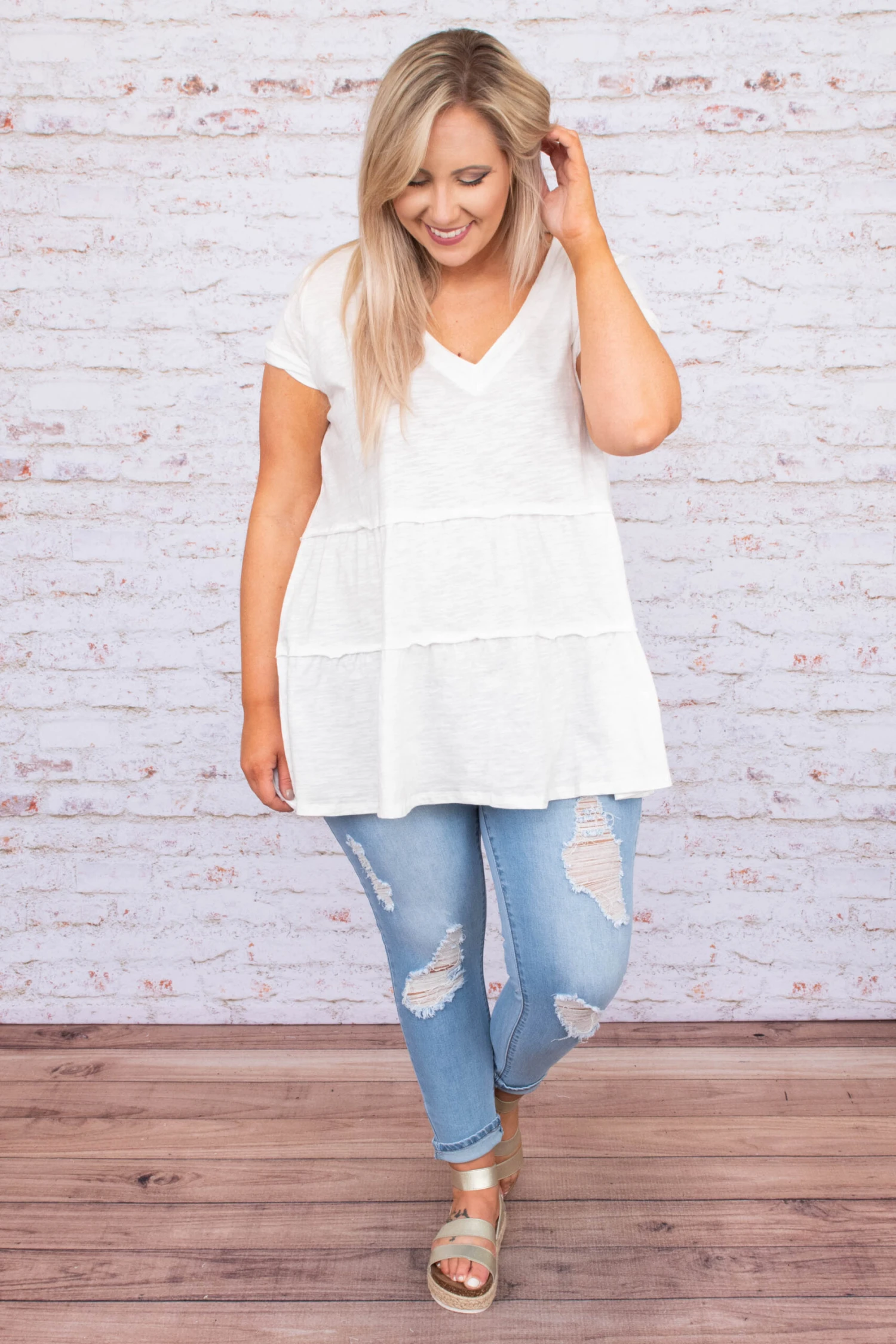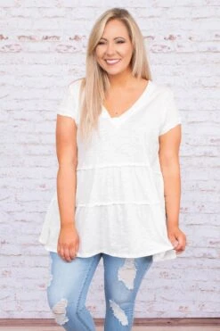 Wear this tunic everyday if you’d like – we won’t judge! This tunic has a solid neutral color you can dress up or down and style with everything in your closet! It’s comfortable for all day wear, has a classic baby doll fit to flatter your figure, and features the cutest v-neck design for the ultimate trend! Simply, pair this tunic with skinnies and wedges for an effortlessly chic look!Â